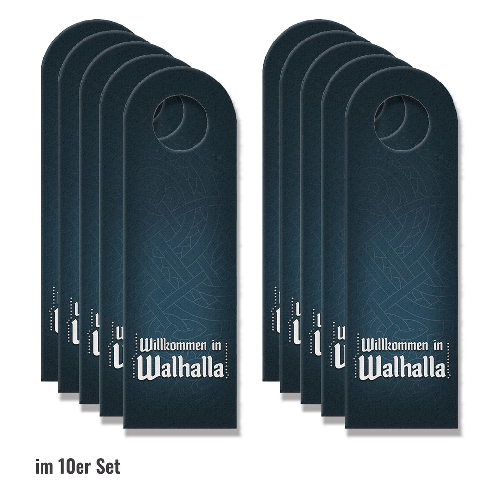 Unser Willkommen in Walhalla Türhänger mit Runen Motiv ist ein originelles und stilvolles Accessoire für Ihre Tür. Er besteht aus hochwertigem Filz, der sorgfältig in Handarbeit in Deutschland hergestellt wurde. Dieser Türhänger versprüht ein Gefühl von Willkommen und Wohlbefinden und lädt alle Besucher zum Betreten von Walhalla ein. Mit seinem witzigen Spruch Willkommen in Walhalla macht er jeden Eintritt zu einer besonderen Erfahrung. Er ist sowohl einzeln als auch im 3er- oder 10er-Sparset erhältlich und hat ein praktisches Loch für die Türklinke. Lassen Sie Ihren Gästen einen bleibenden Eindruck von Ihrer Wohnung hinterlassen und holen Sie sich jetzt unseren Willkommen in Walhalla Türhänger!
