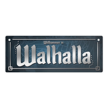 Wikinger Metallschild im nordischen Stil mit Spruch: Willkommen in Walhalla