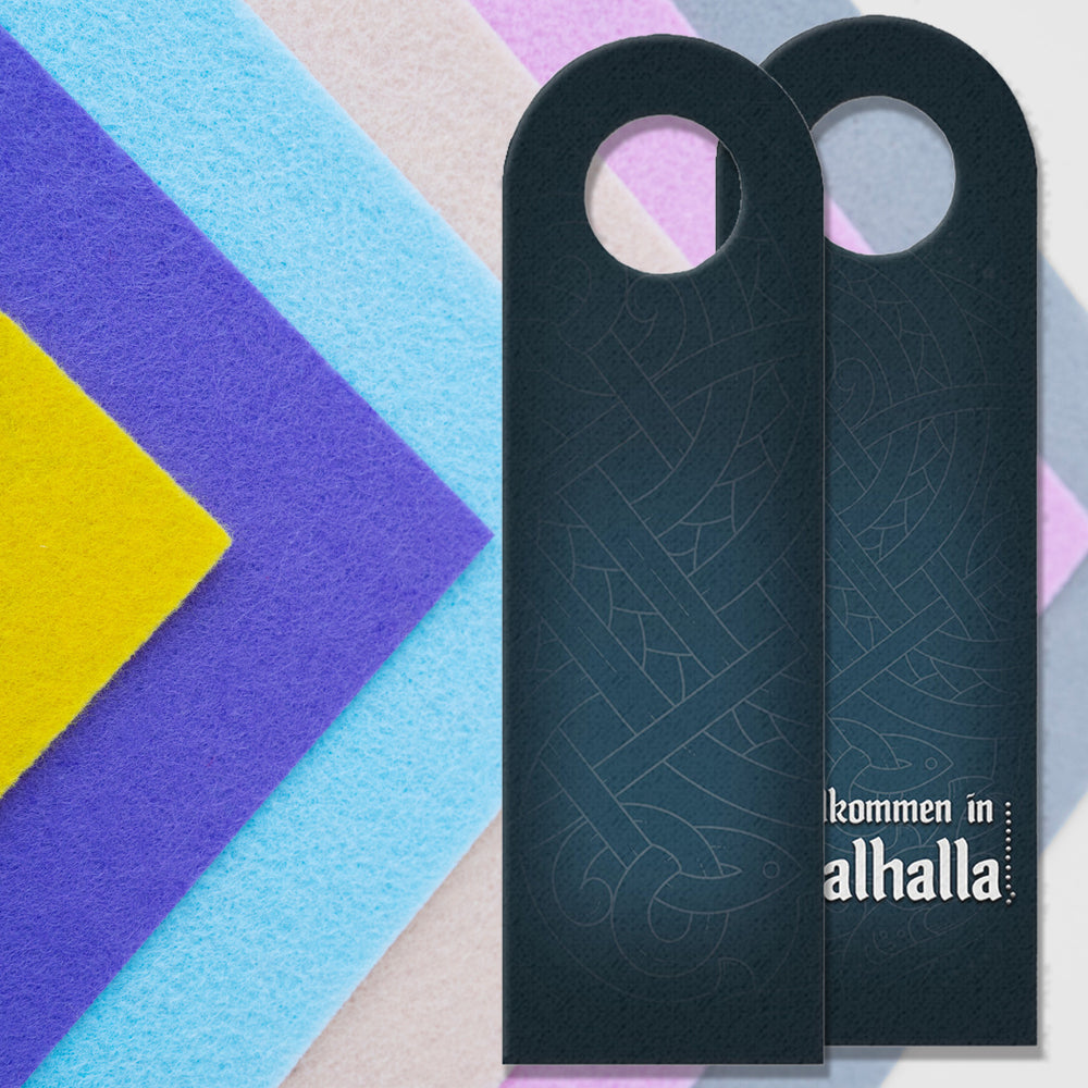 Mit diesem Türhänger an deiner Tür lädst du alle Besucher herzlich dazu ein, Walhalla zu betreten. Hinweise: Material: Filz / Größe ca. 8x27 cm / beidseitig bedruckt