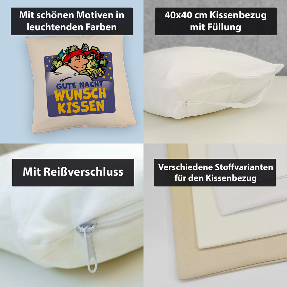 - 1x Wunsch Kissen mit Spruch Gute Nacht für traumhafte Erholung in der gewählten Ausführung
