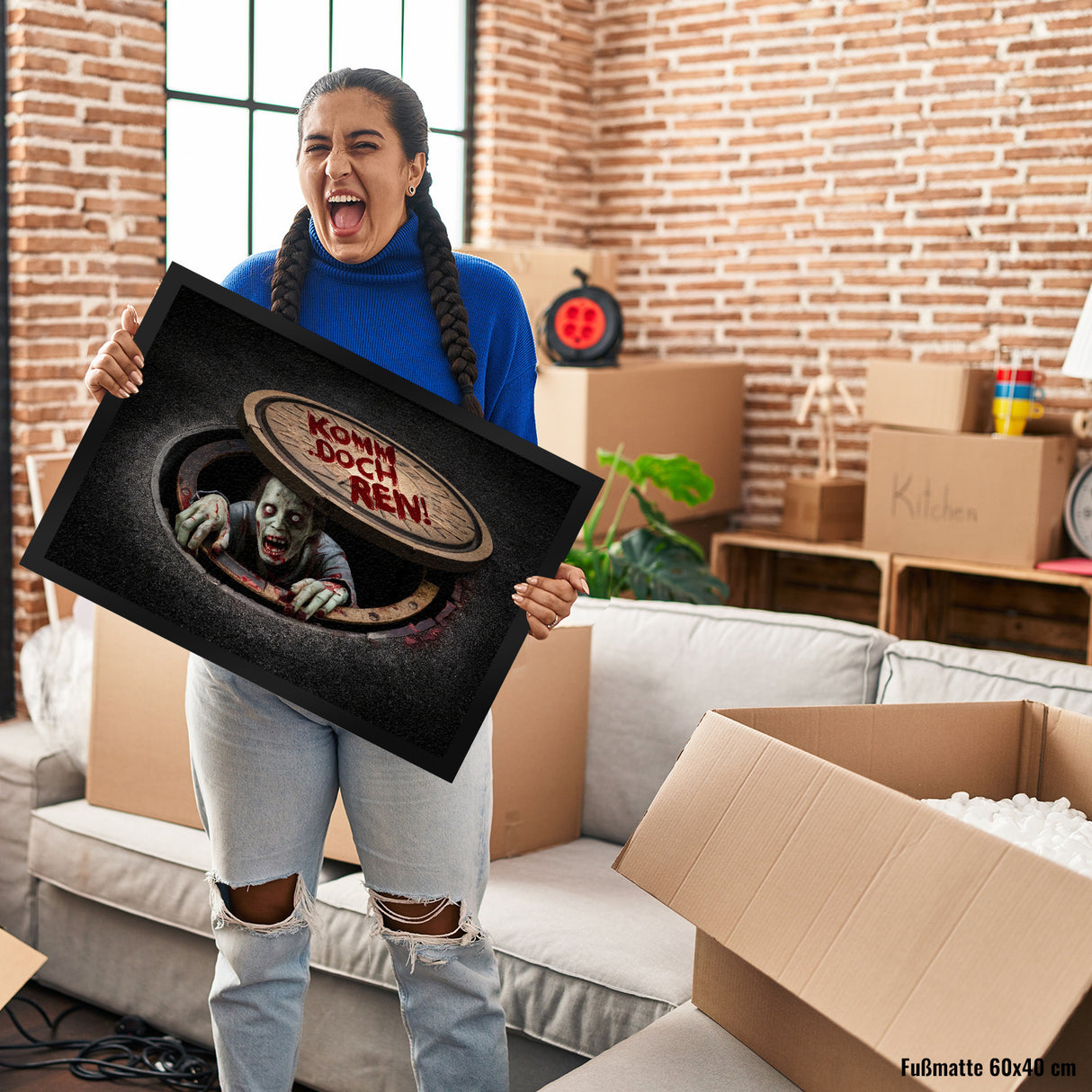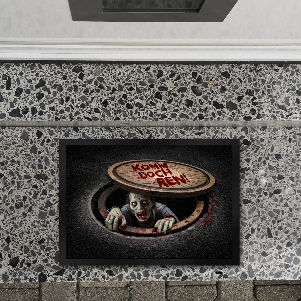 Zombie unter Kanaldeckel Fußmatte in 35x50 cm - Komm doch rein
