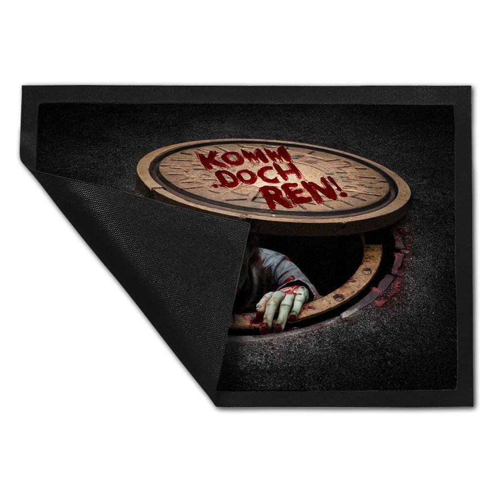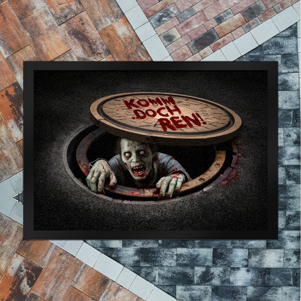 - 1x Zombie unter Kanaldeckel Fußmatte in 35x50 cm - Komm doch rein in der gewählten Größe