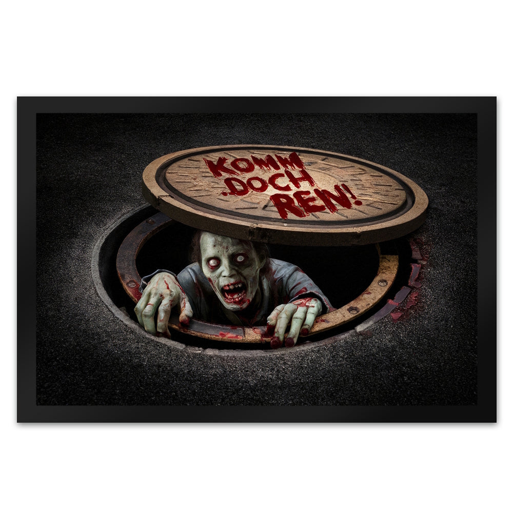 Zombie unter Kanaldeckel Fußmatte in 35x50 cm ohne Rand - Komm doch rein