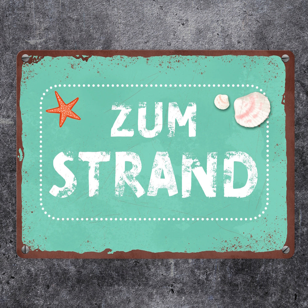 - 1x Zum Strand Metallschild für den Sommer in der gewählten Größe