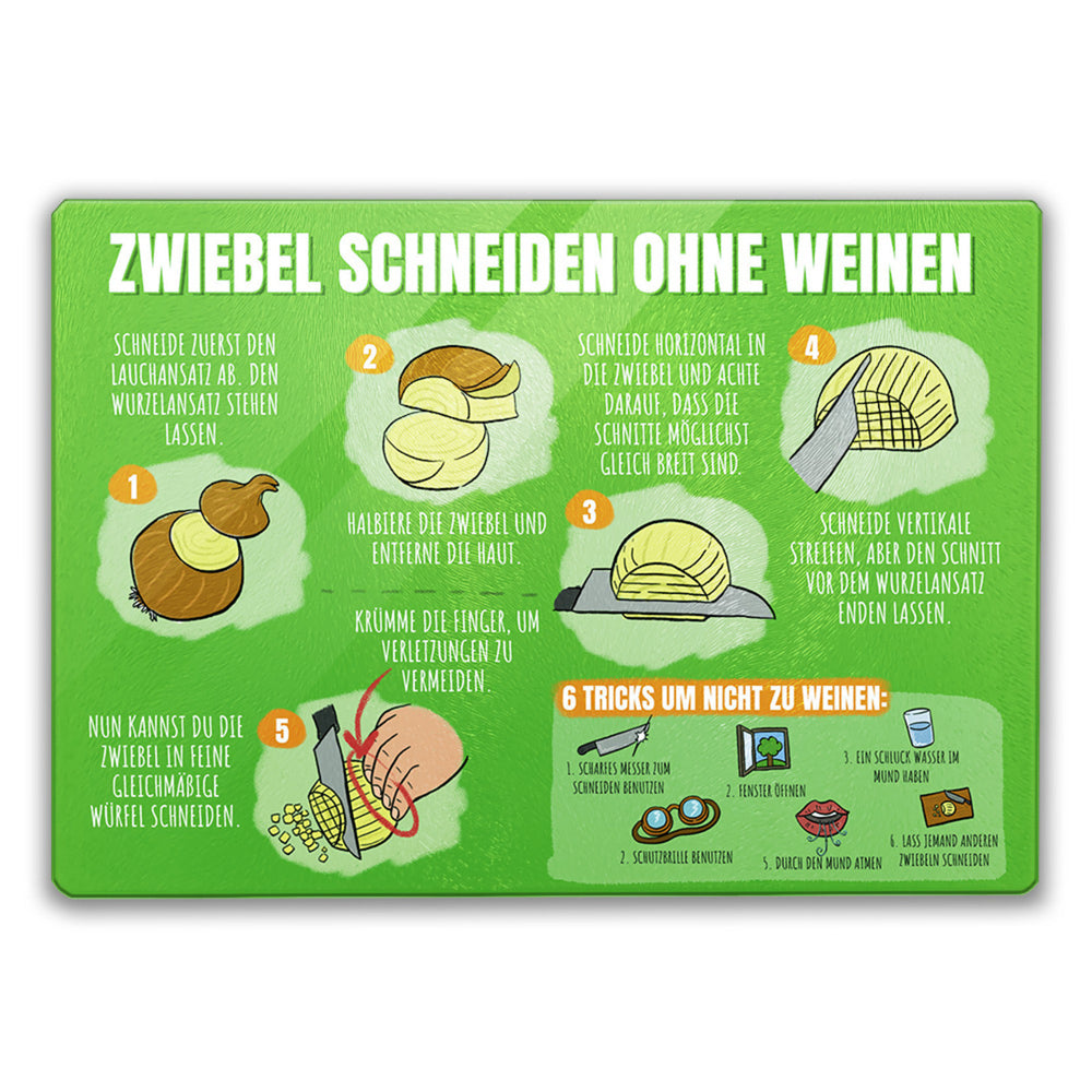 Zwiebel schneiden ohne Weinen Schneidebrett aus Glas mit Anleitung