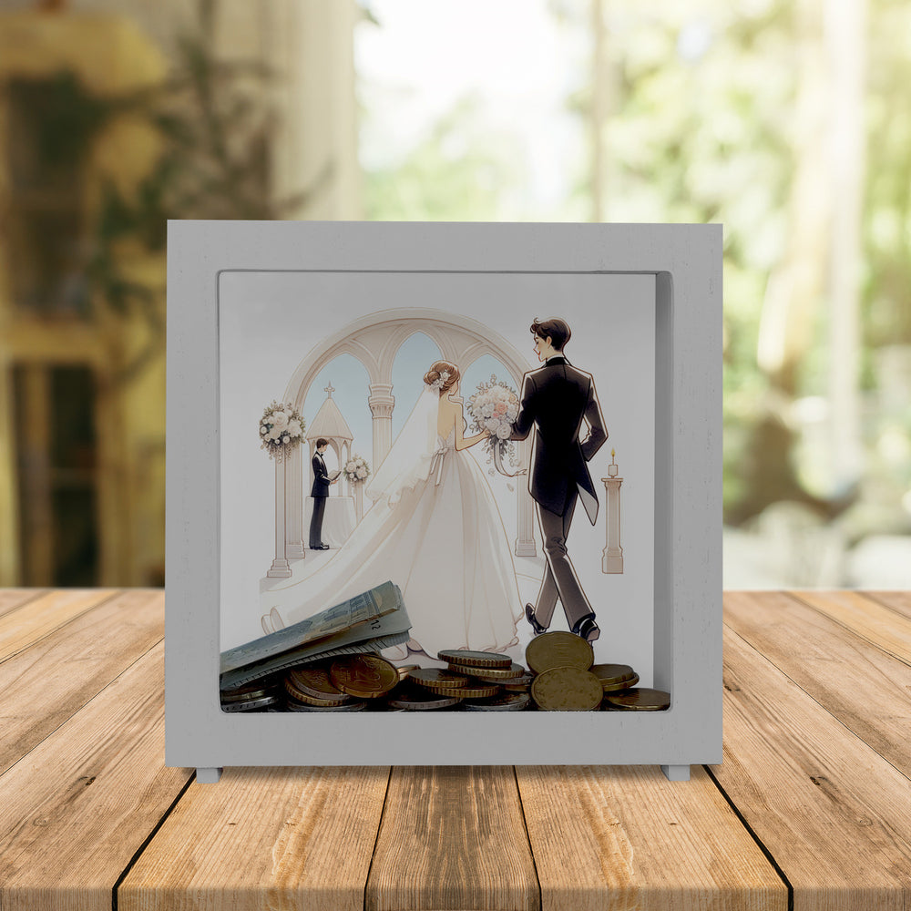 Ihr steht kurz davor, den Bund fürs Leben zu schließen und die einzige Frage, die euch noch beschäftigt ist: Wo bleibt das Kleingeld für all die kleinen und großen Hochzeitswünsche? Schüttelt das Sparschwein und entdeckt: Es ist eine Hochzeitskasse Spardose in Braut und Bräutigam-Aufmachung! Diese entzückende Schatzkiste ist der romantische Kickstart für eure gemeinsame Zukunft. Sparfüchse aufgepasst: Eure Münzen bekommen jetzt ein Zuhause, das sie verdient haben – eingehüllt in Liebe und Vorfreude. Von der schlichten, rustikalen Holzspardose über die elegante Keramik-Version bis hin zur exklusiven Rahmen-Variante mit Durchblick auf euer wachsendes Hochzeitsbudget – hier findet jedes Paar sein Herzstück. Handgefertigt in einer deutschen Manufaktur, verkörpert jede dieser Spardosen Individualität und Charme. Ob ihr für die perfekte Hochzeitstorte oder für extravagante Flitterwochen spart – es wird gegrunzt vor Glück bei jedem Cling und Clang der fallenden Münzen! Verschenkt sie an Freunde, die sich trauen, oder schwört euch selbst den Spar-Schwur. Mit dieser Hochzeitskasse Spardose wird jeder Cent zum süßen Vorgeschmack auf den Tag, an dem ihr sagt: Ja, ich will!