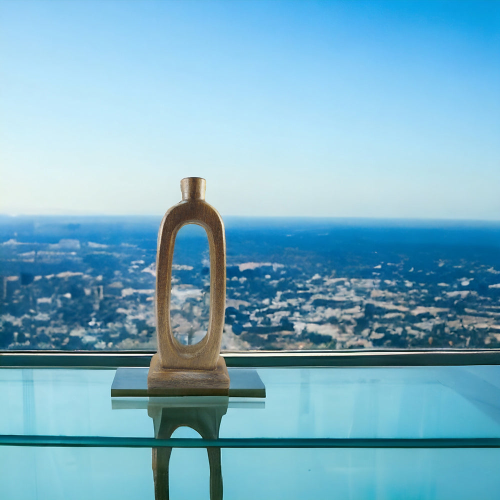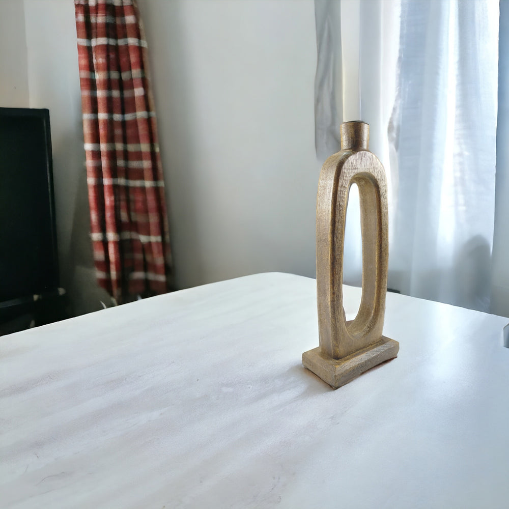 Kerzenhalter Stabkerze oval aus Mango in Braun-Antik