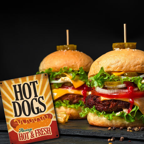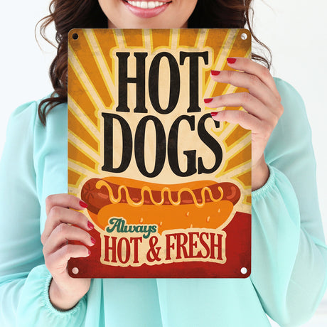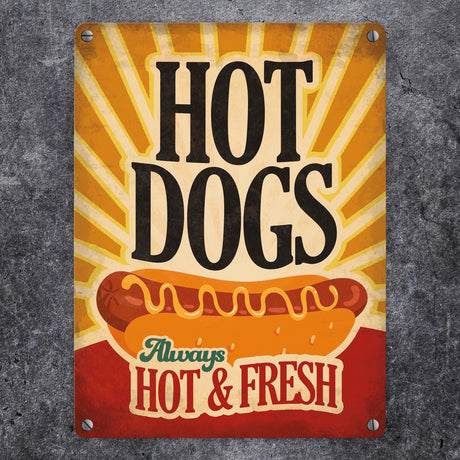 Metallschild mit American Diner Classics - Hot Dogs Motiv