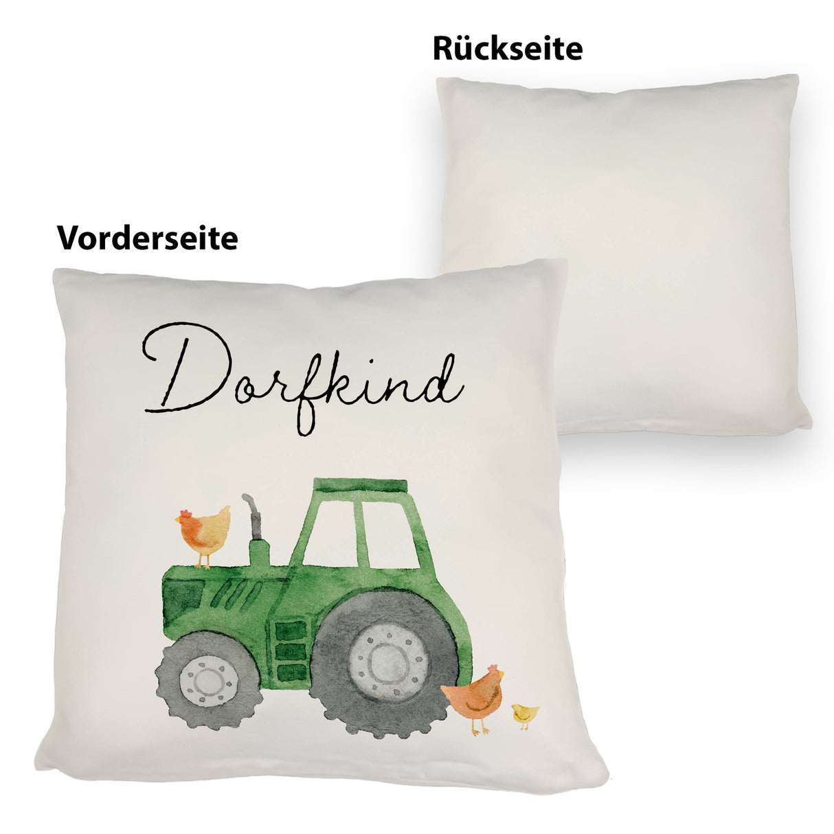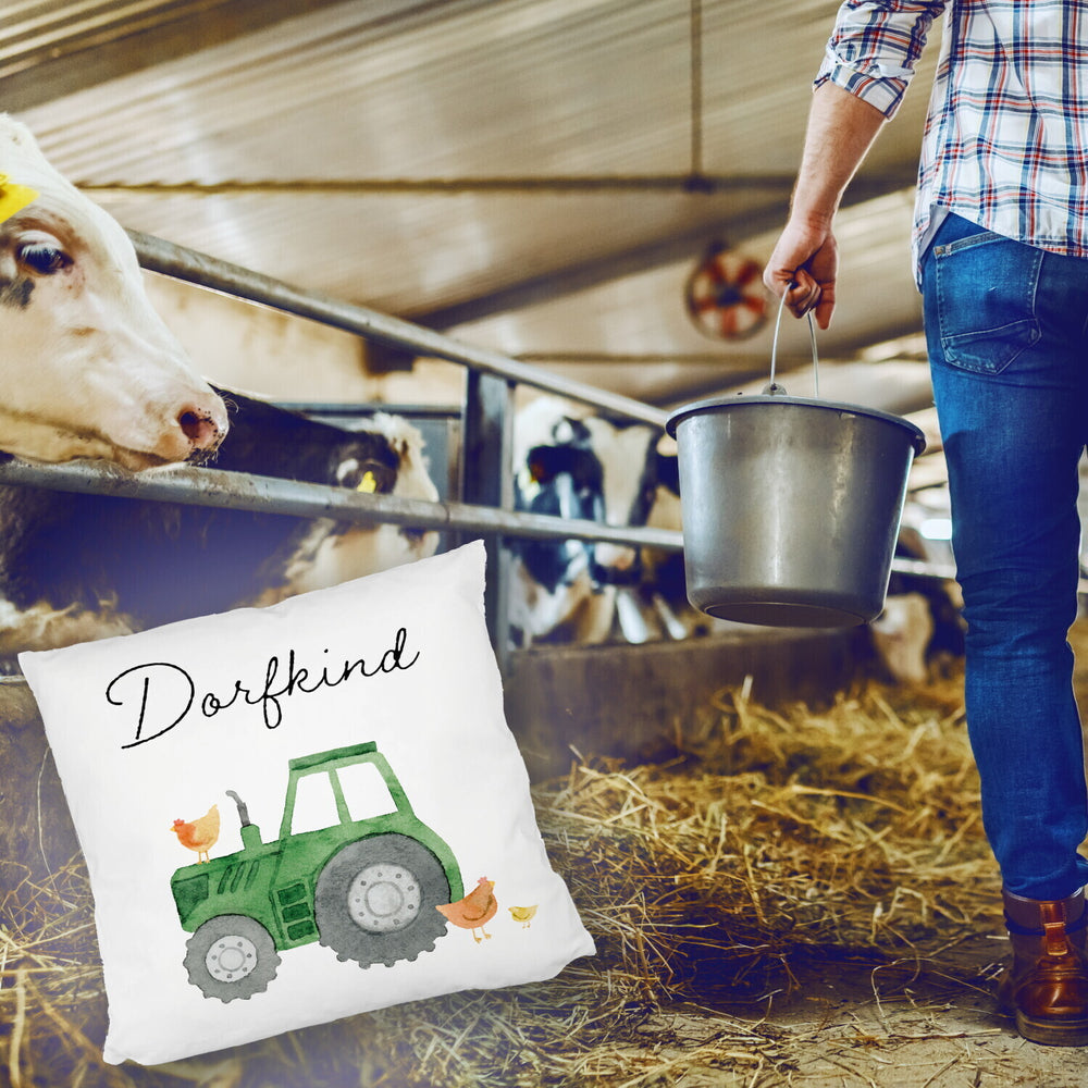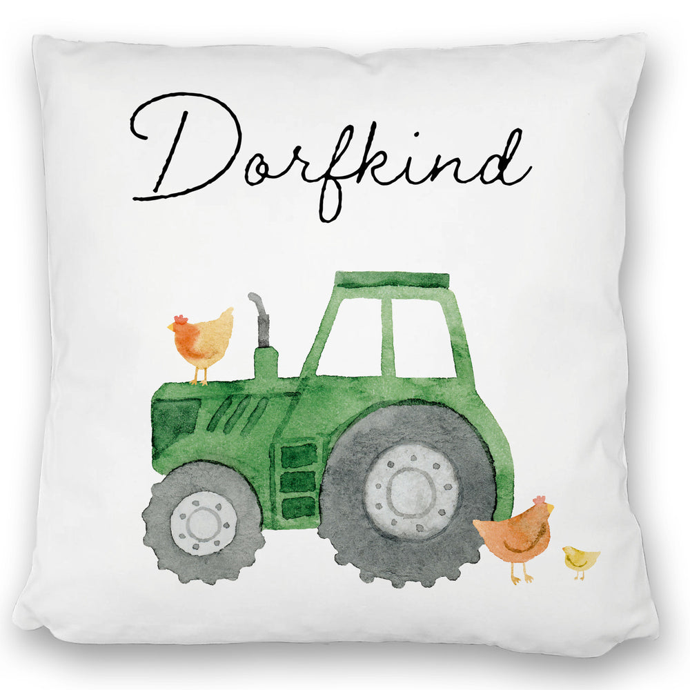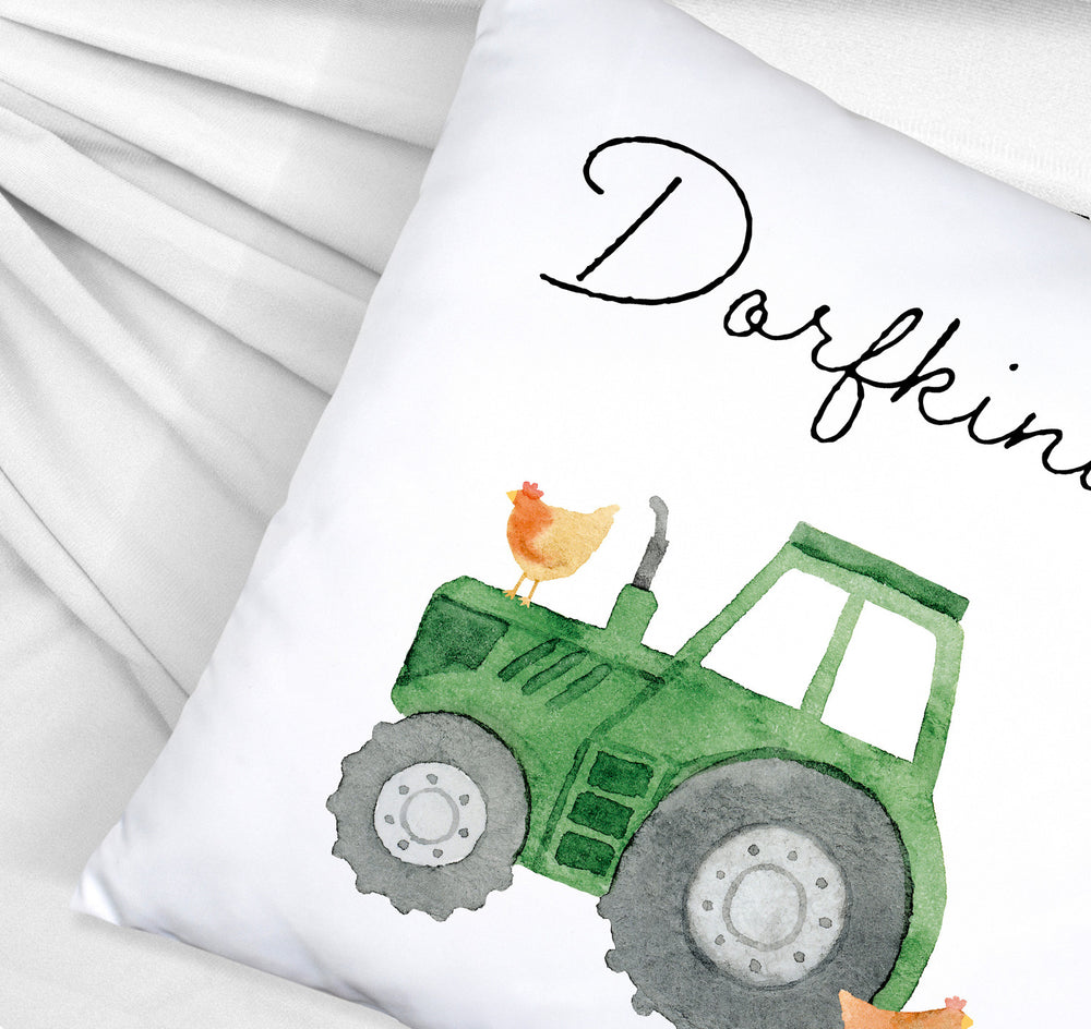 - 1x Dorfkind grüner Traktor Kissen in der gewählten Ausführung