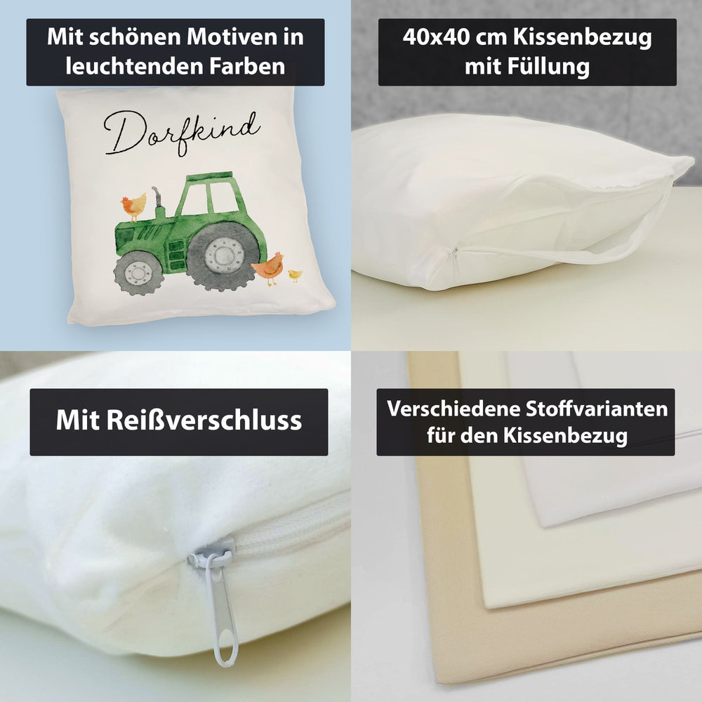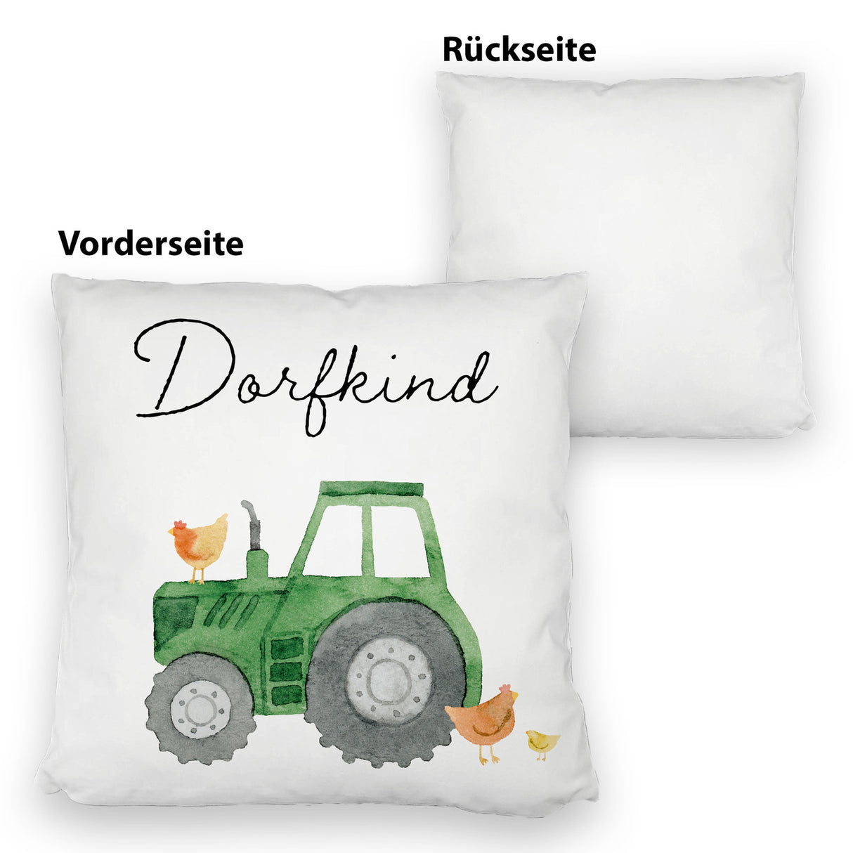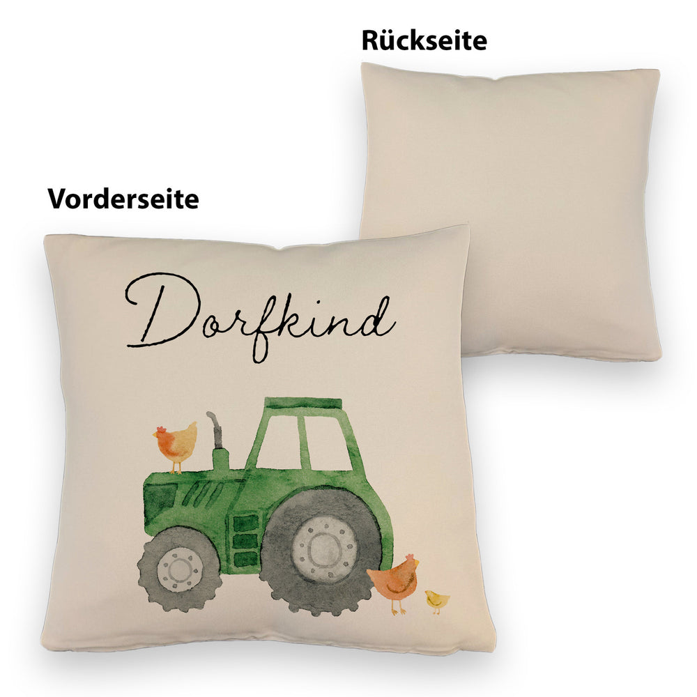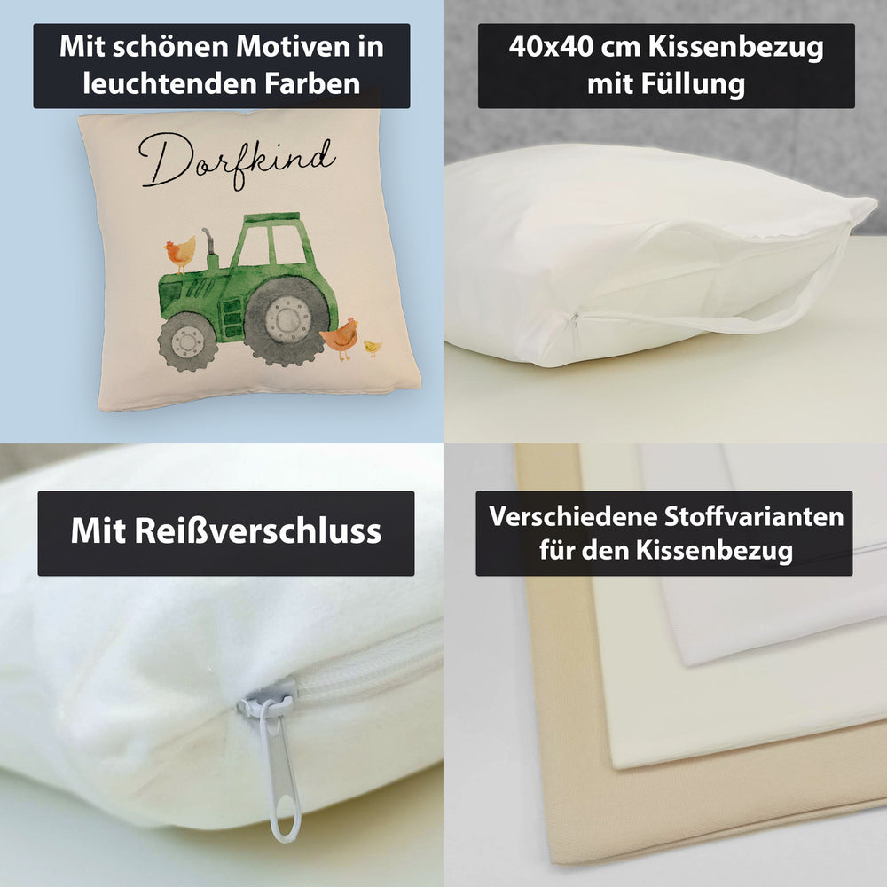 - 1x Dorfkind grüner Traktor Kissen in der gewählten Ausführung