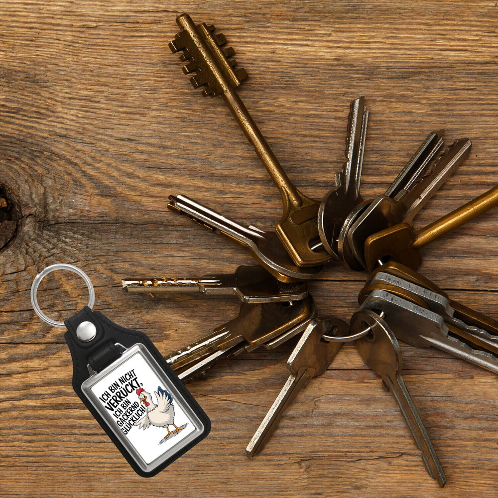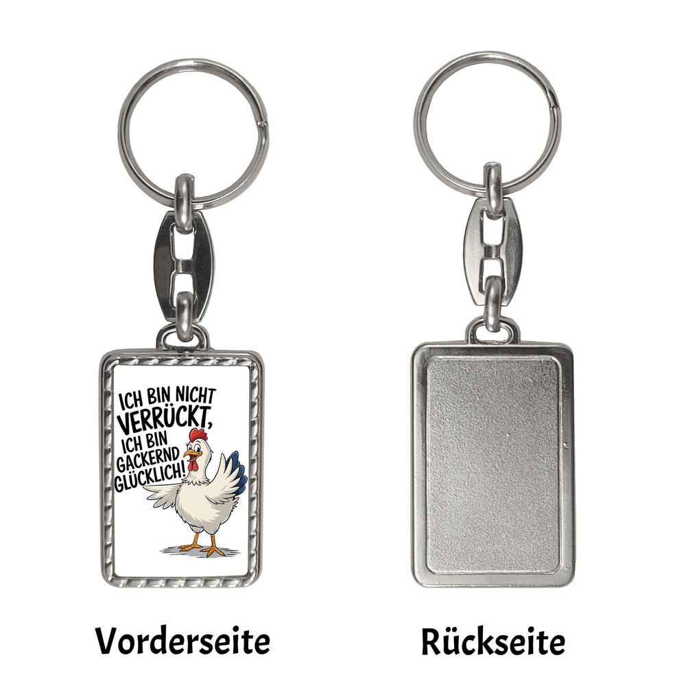 - 1x Fröhliches Huhn Gackernd Glücklich Schlüsselanhänger in der gewählten Ausführung