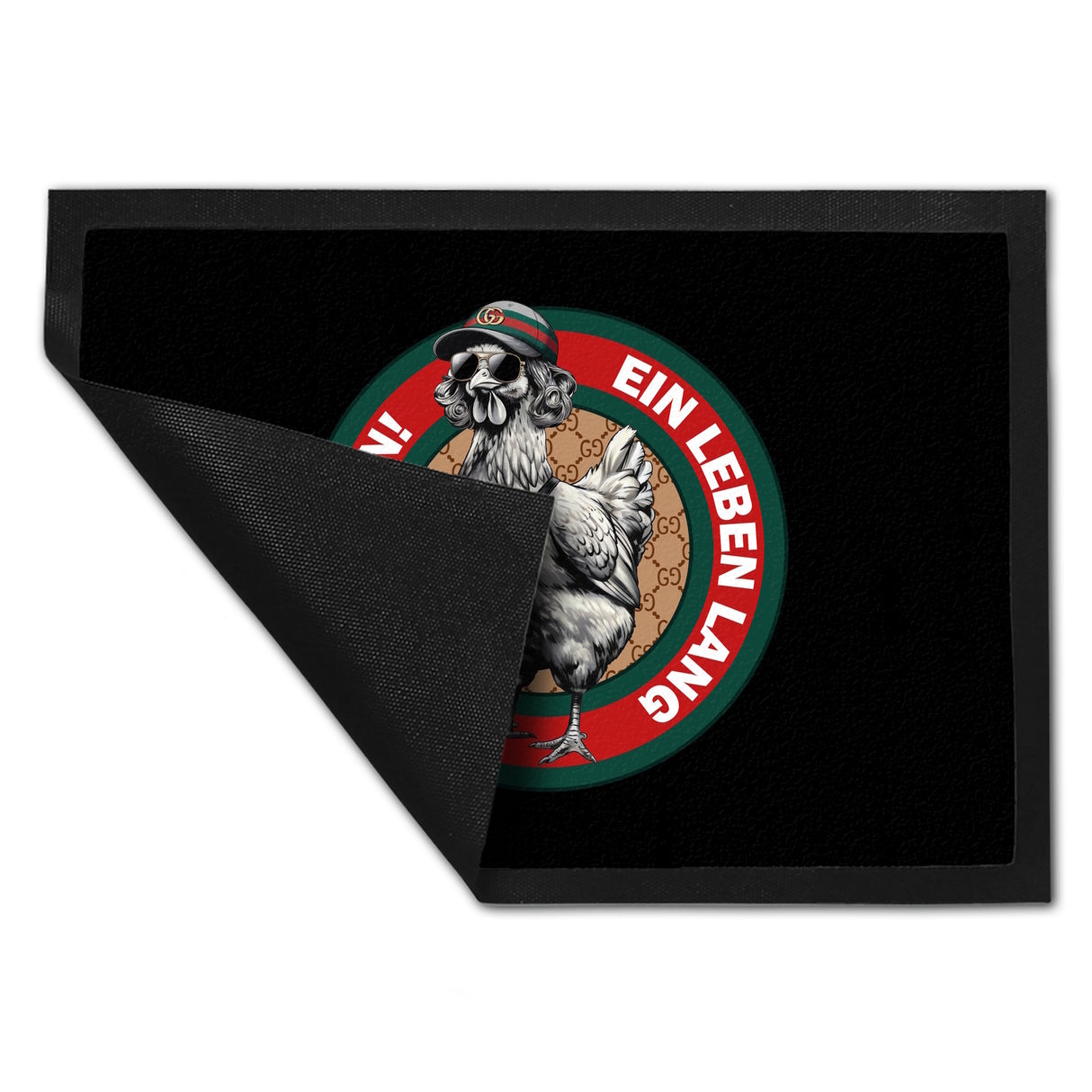 - Holen Sie sich jetzt diese einzigartige Fußmatte, die mit Liebe entworfen und bedruckt wurde! Sie verbindet Qualität mit Humor und Stil und bringt frischen Wind in jeden Eingangsbereich. Sichern Sie sich ein Lächeln bei jedem Besuch mit dieser lustigen und modischen Hühnermatte!