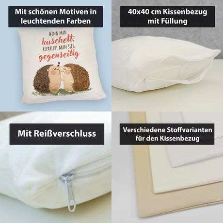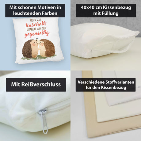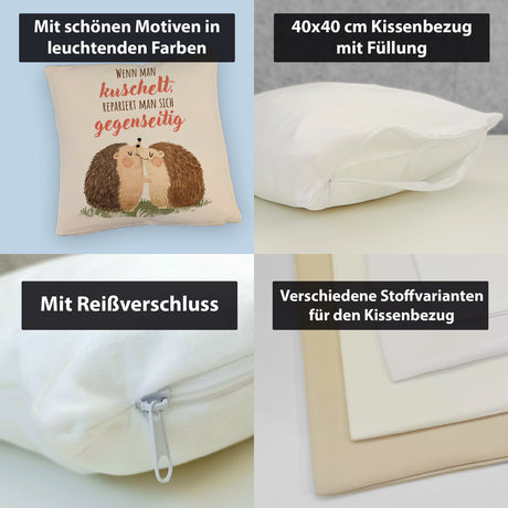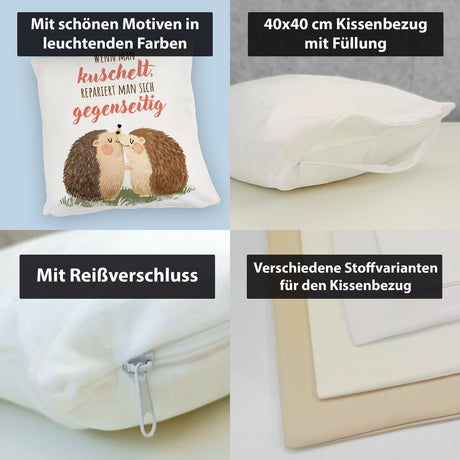 €16,95Grundpreis /Nicht verfügbar Igel Pärchen Kissen mit Spruch Beim kuscheln repariert man sich gegenseitig