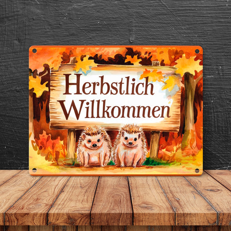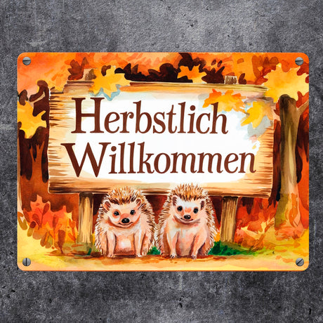 Ab €16,95Grundpreis /Nicht verfügbarAuf LagerIgel Paar Metallschild in 15x20 cm mit Spruch Herbstlich Willkommen