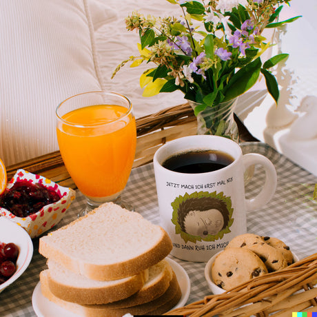 Winterschlaf vorbei jetzt kommt die Frühjahrsmüdigkeit Igel Kaffeebecher