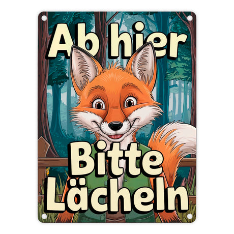 Lächelnder Fuchs im Wald Metallschild in 15x20 cm - Bitte lächeln