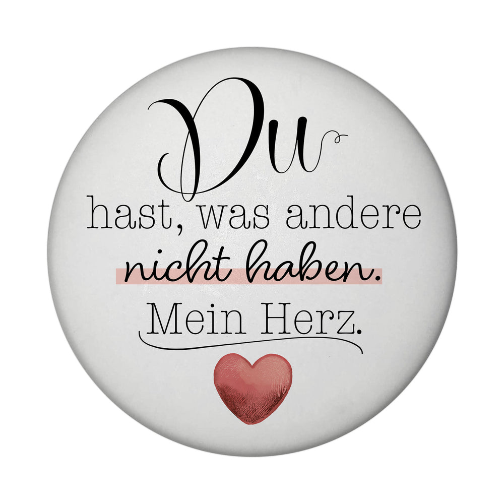 Herz Magnet rund rund mit Spruch Du besitzt mein Herz