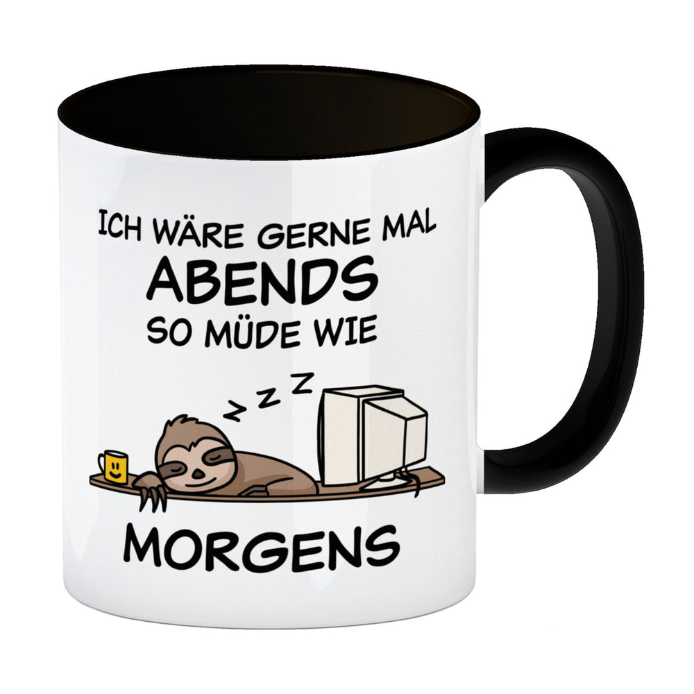 - 1x Ich wäre gerne abends so müde wie morgens Faultier Kaffeebecher in der gewählten Ausführung