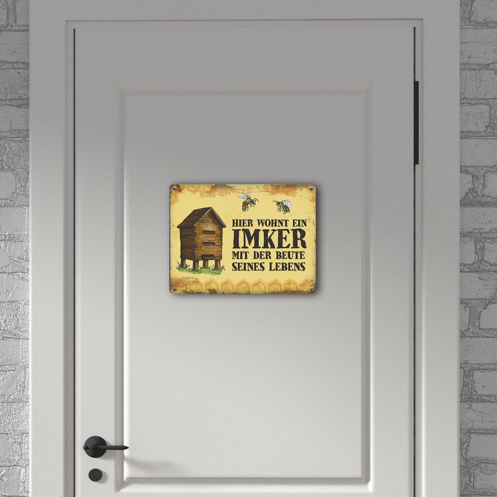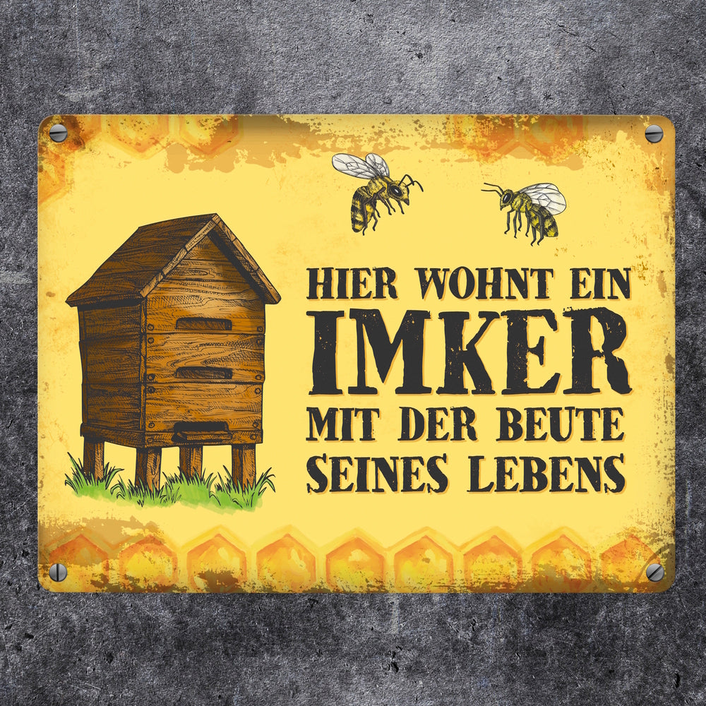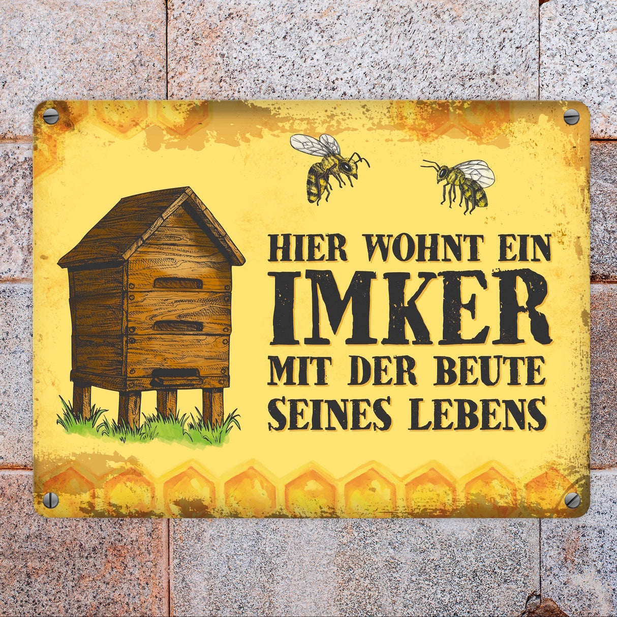 - 1x Hier wohnt ein Imker mit seiner Beute seines Lebens Metallschild in der gewählten Größe