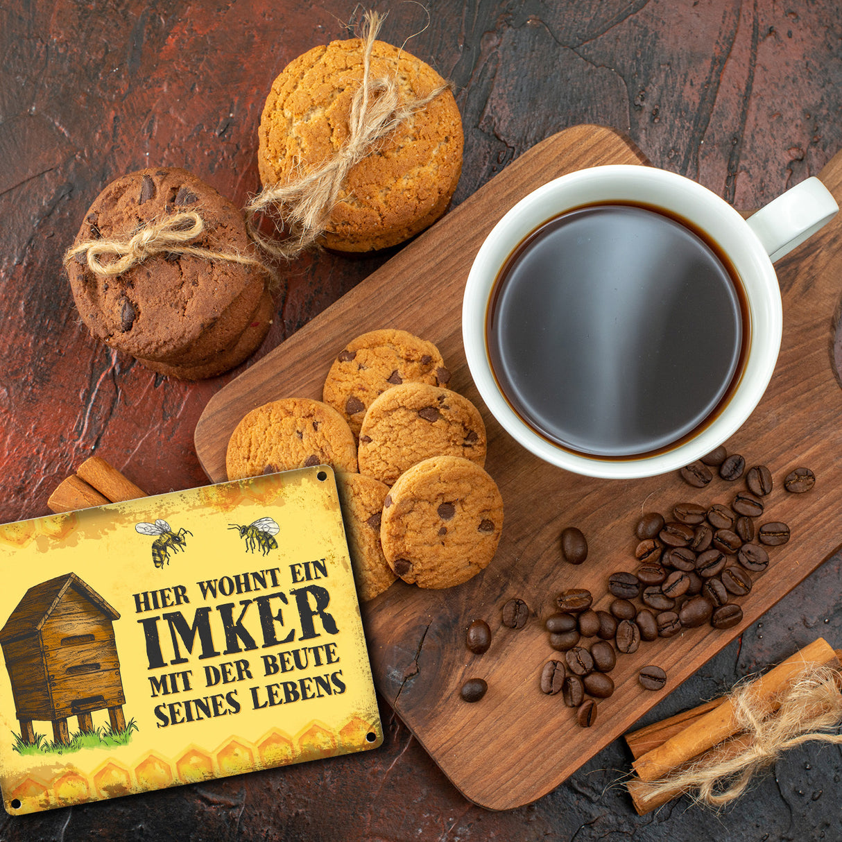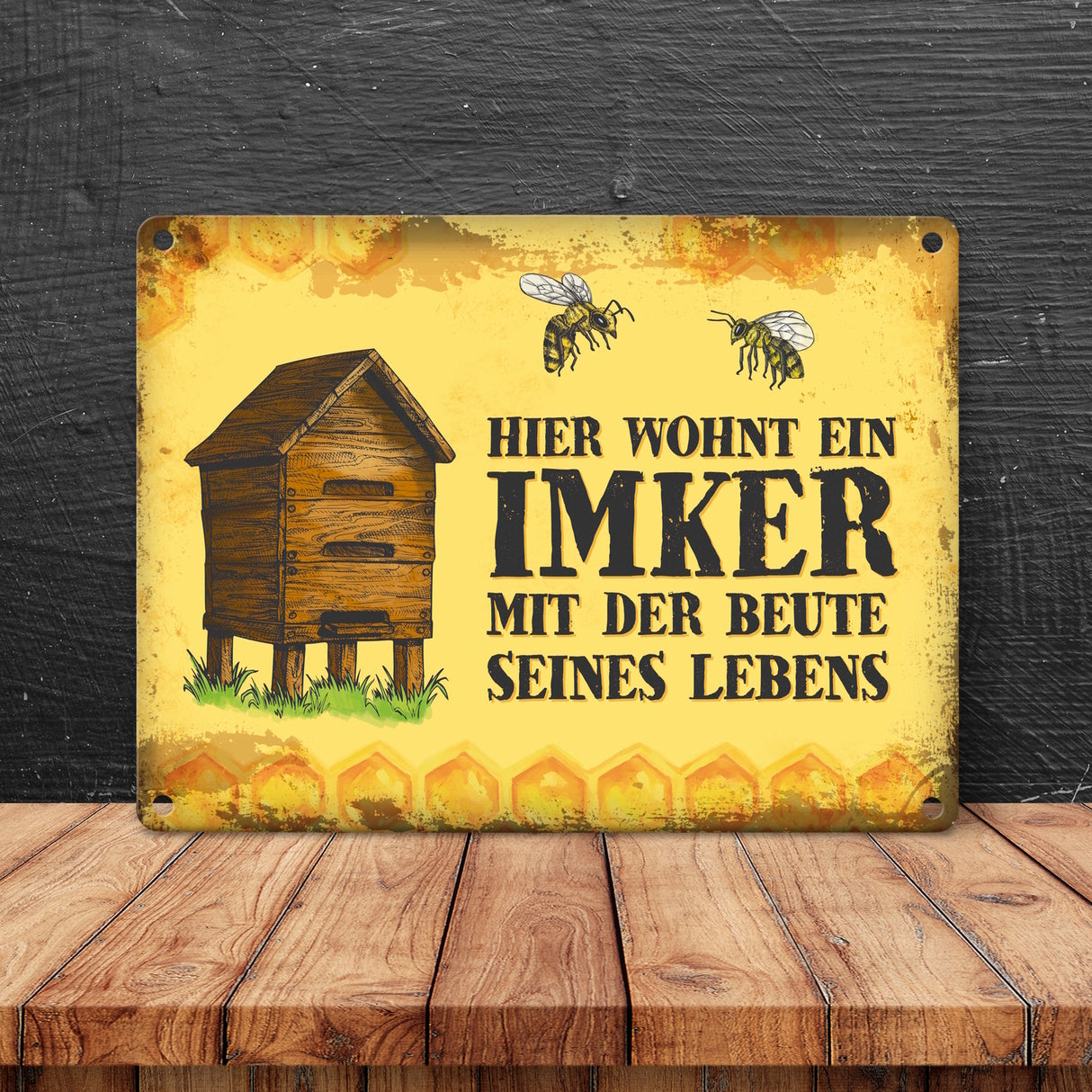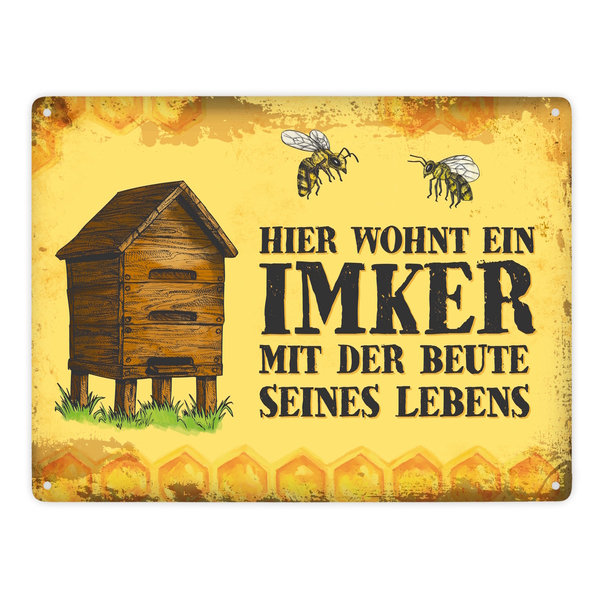 - 1x Hier wohnt ein Imker mit seiner Beute seines Lebens Metallschild in der gewählten Größe
