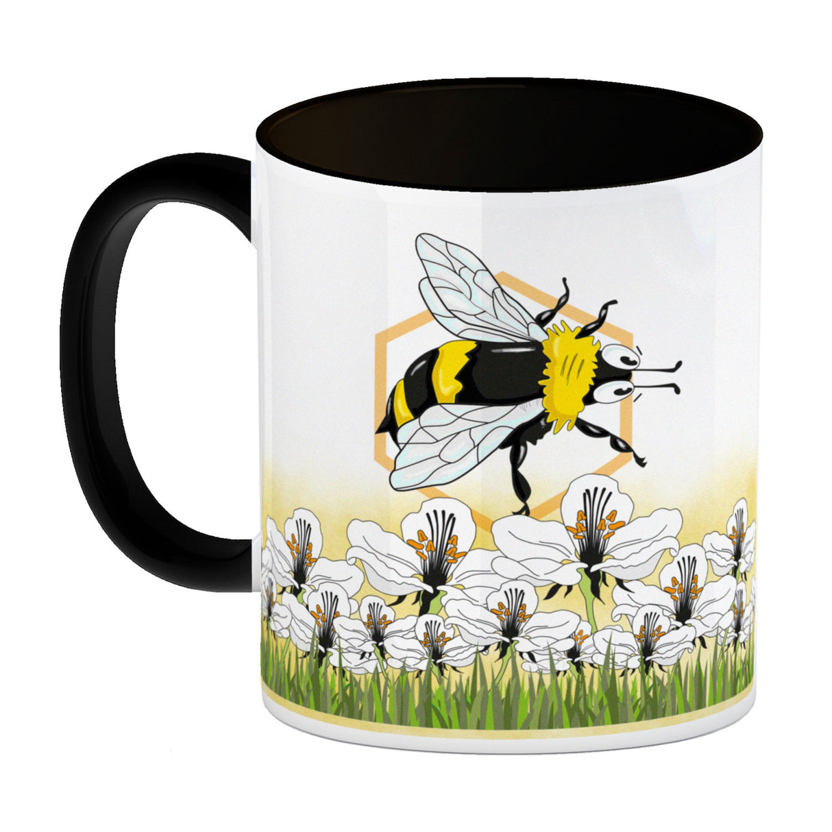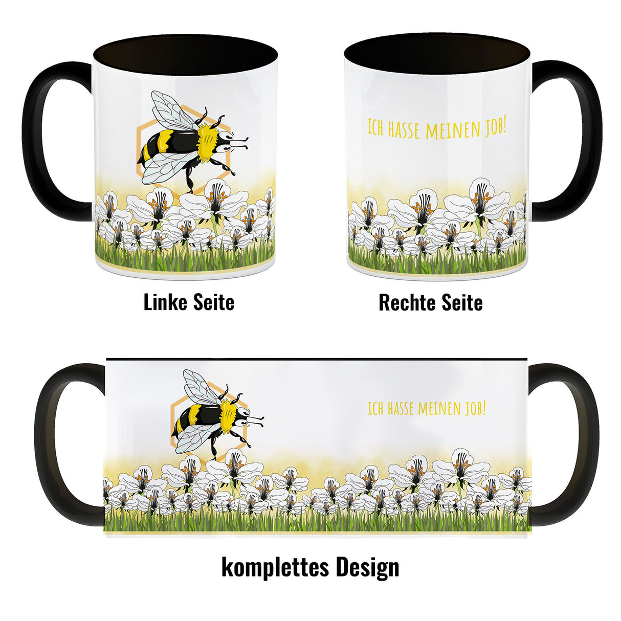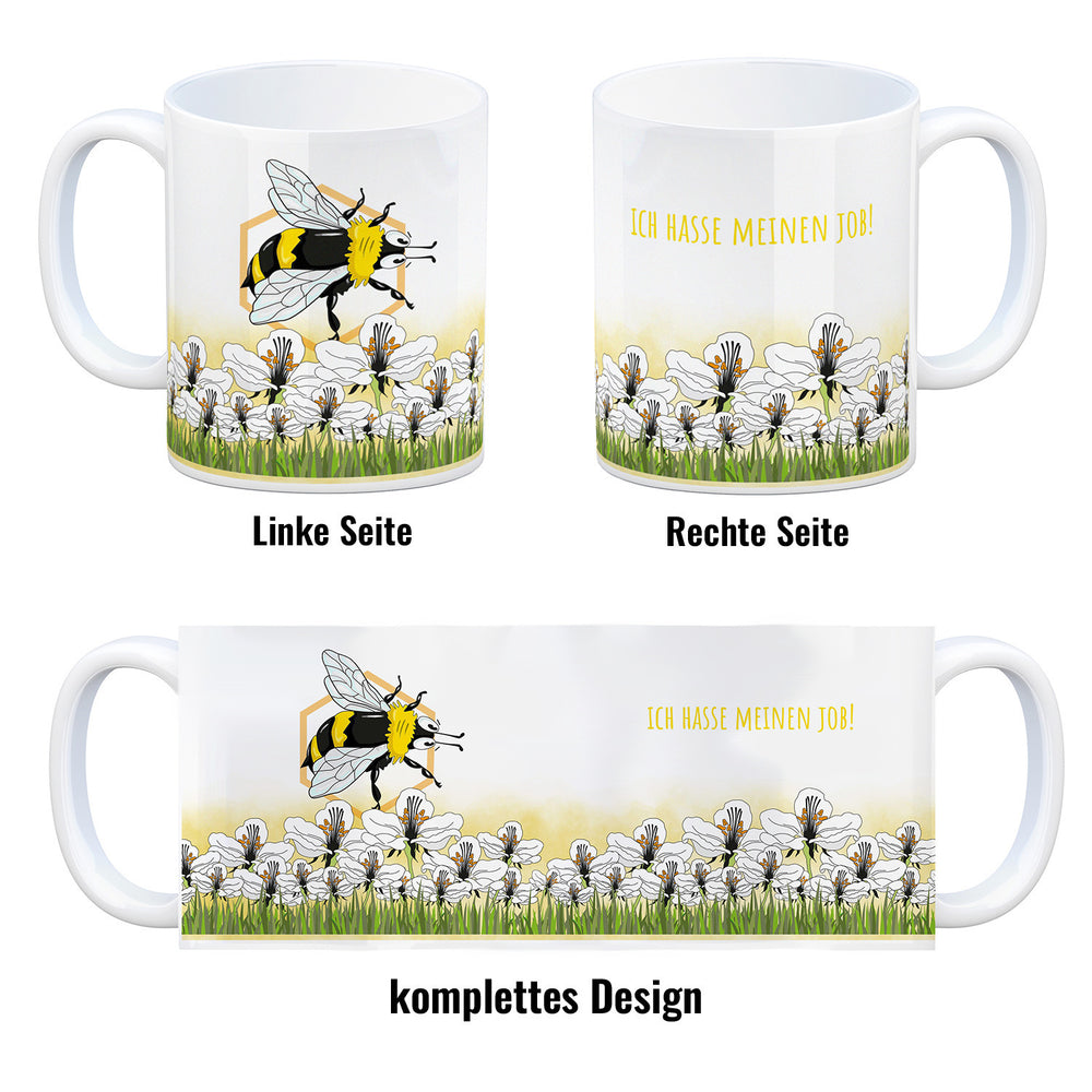 - 1x Kaffeebecher mit Wiesen-Motiv, Biene und witzigem Spruch fürs Büro oder Kollegen in der gewählten Ausführung