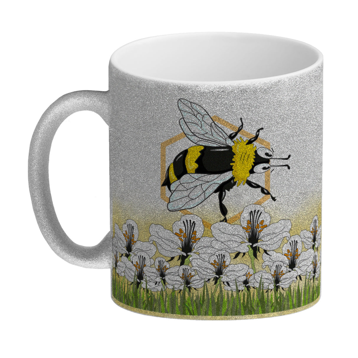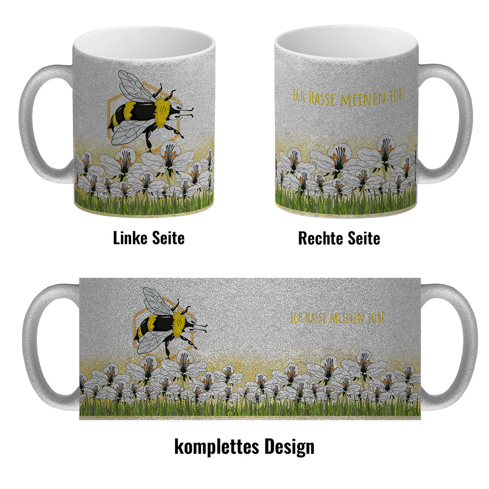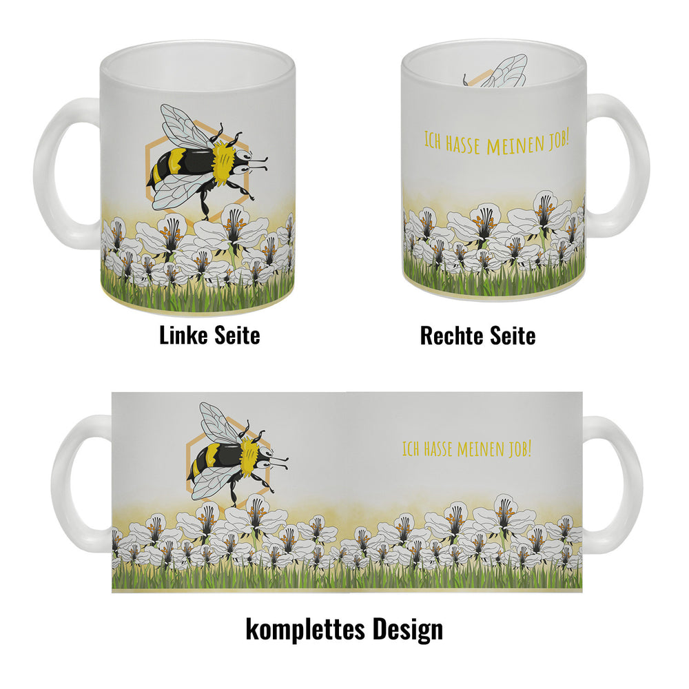 - 1x Kaffeebecher mit Wiesen-Motiv, Biene und witzigem Spruch fürs Büro oder Kollegen in der gewählten Ausführung
