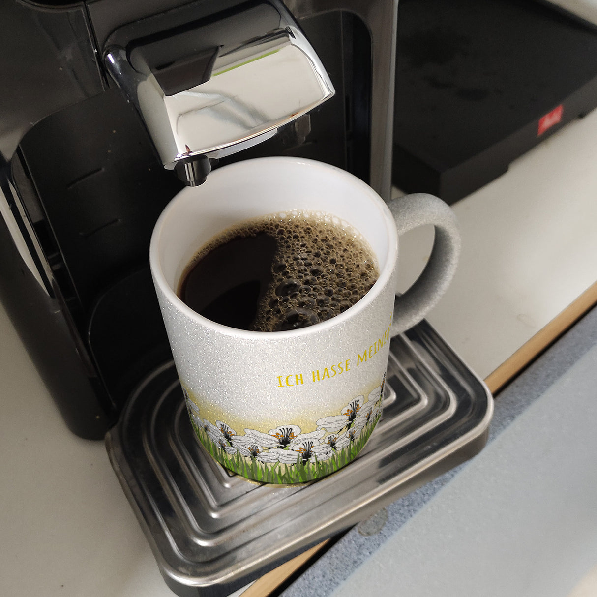 - Erhältlich in unterschiedlichen Varianten: Als weiße Standardtasse, mit farbigem Henkel und Innenseite, als edle Glastasse oder in der exklusiven Silberedition mit Glitzereffekt. Mit Sorgfalt in Handarbeit hergestellt in unserer Tassen-Manufaktur in Deutschland.