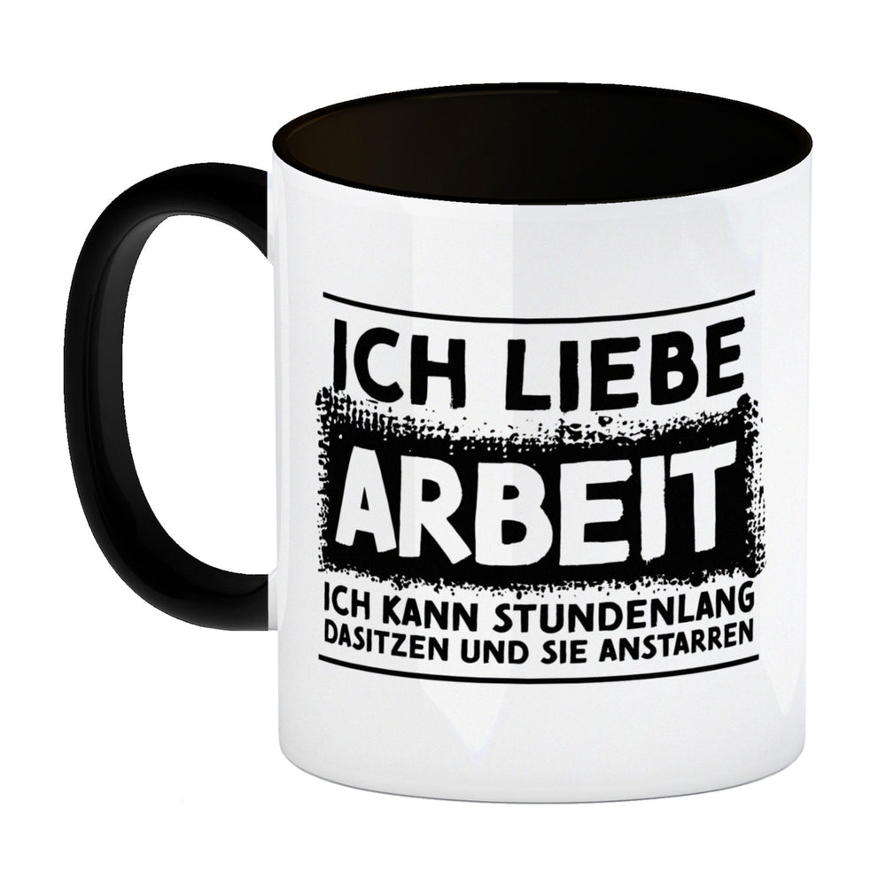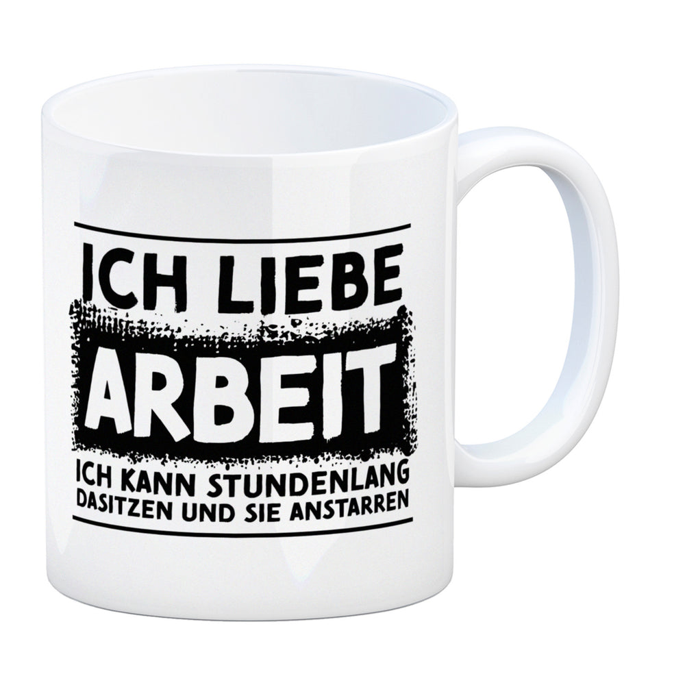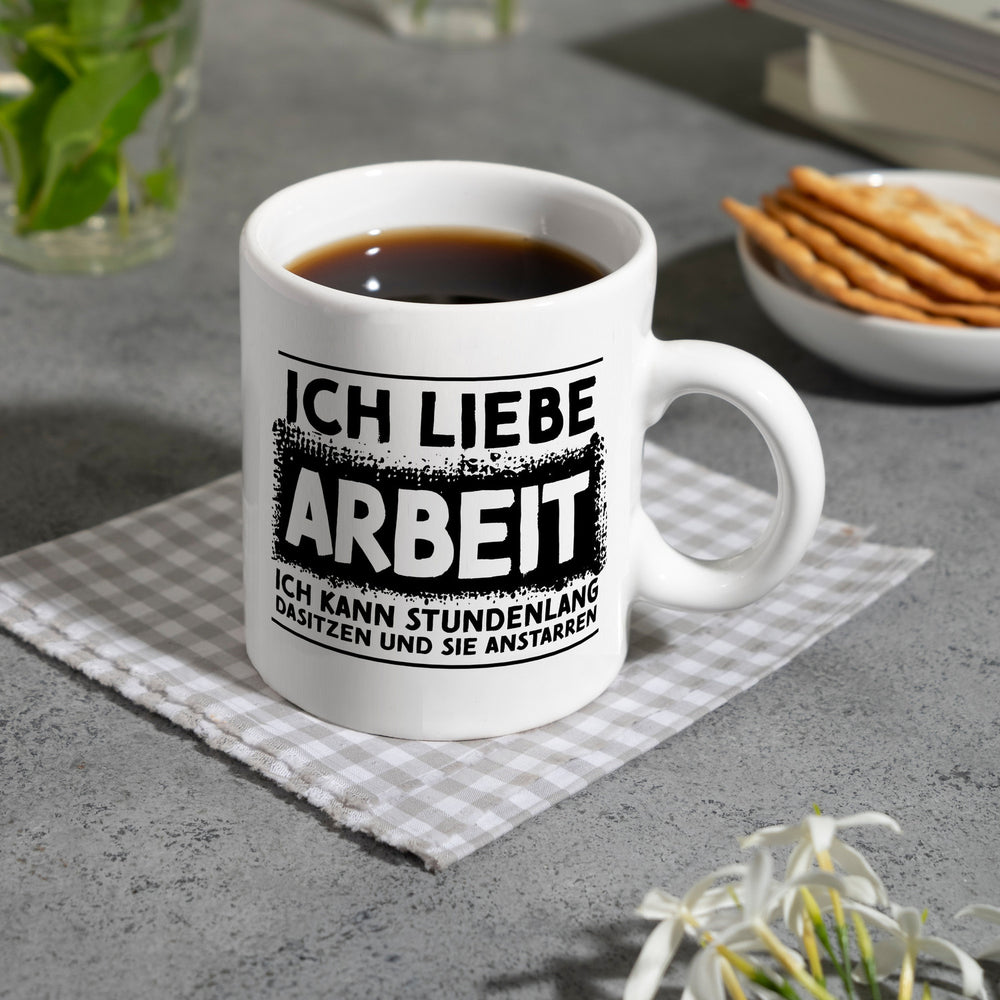 - Liebst du auch Arbeit so sehr, dass du sie stundenlang anstarren könntest? Dann bist du wohl sehr gut im Prokrastinieren und diese Tasse passt für dich wie die Faust aufs Auge. Das schlichte Motiv und der witzige Spruch machen die Tasse zur perfekten Begleitung durch den Arbeitstag.
