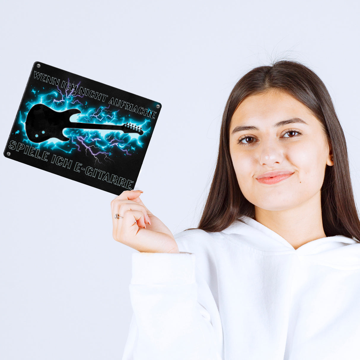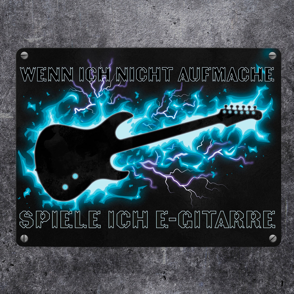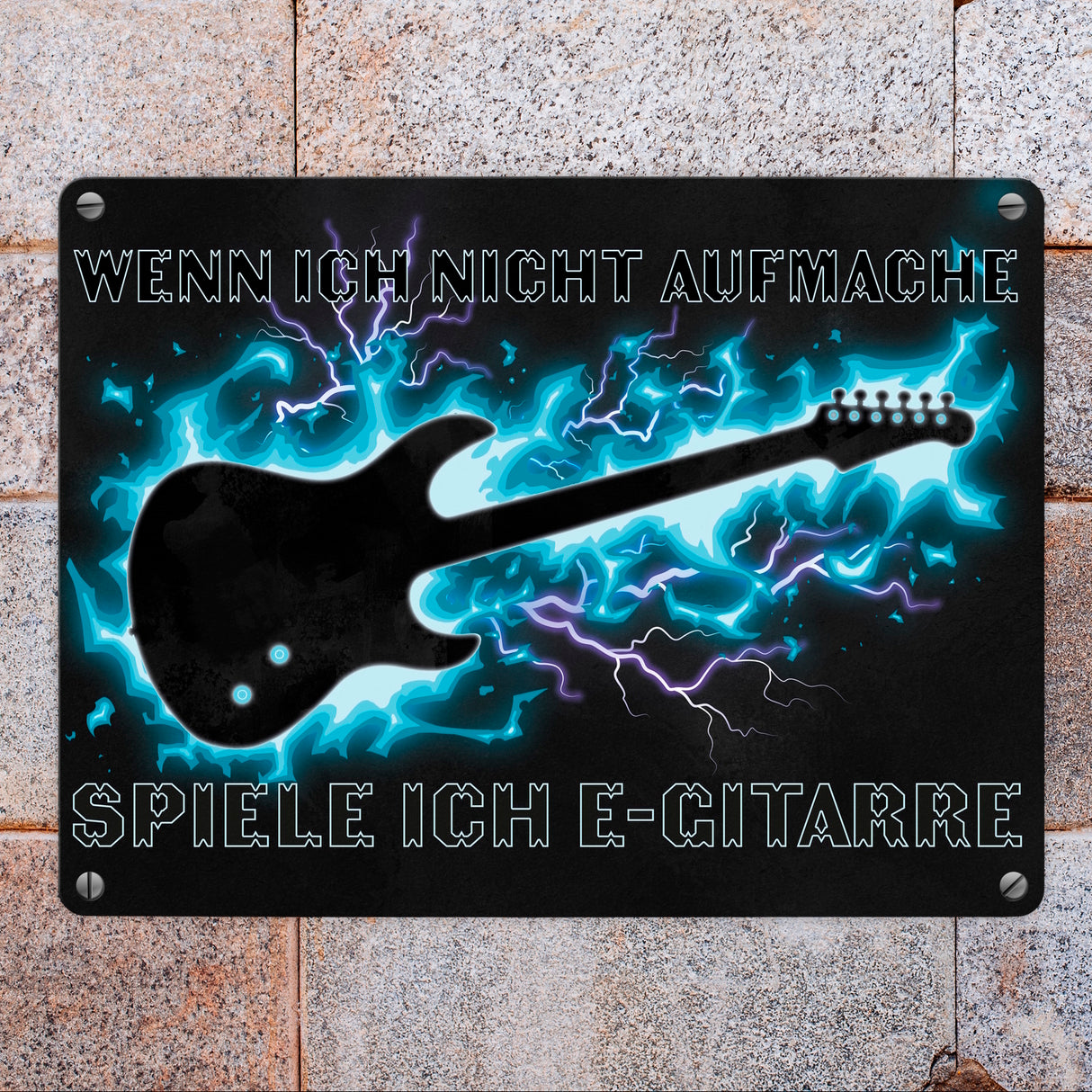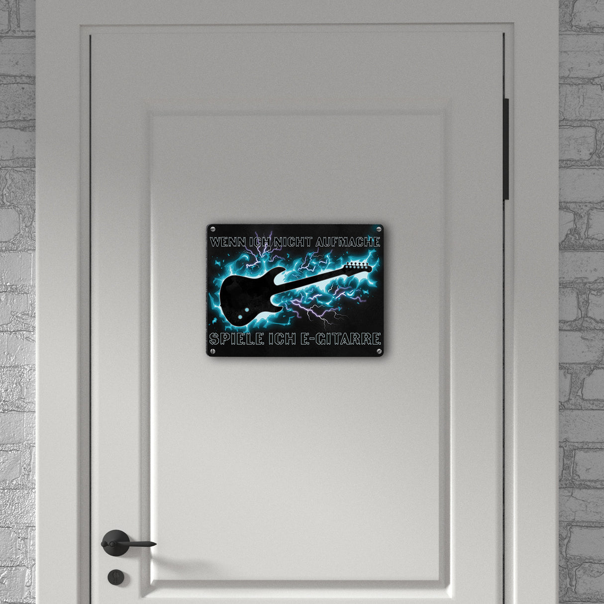 • Viele Menschen spielen ein Instrument, darunter sind auch viele Gitarristen. Damit die Leute, die an deiner Tür klingeln, wissen, dass du E-Gitarre spielst und es in deinem Zuhause auch mal lauter werden kann, gibt es dieses Metallschild.