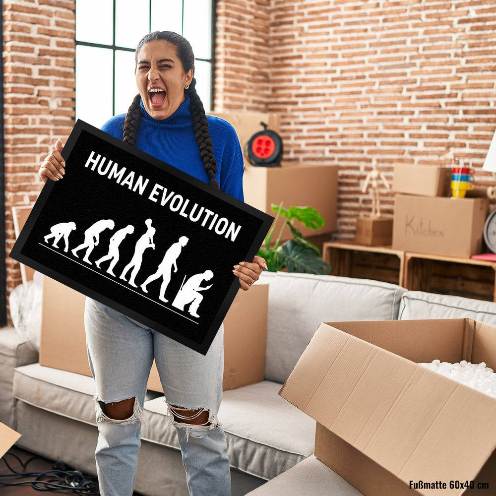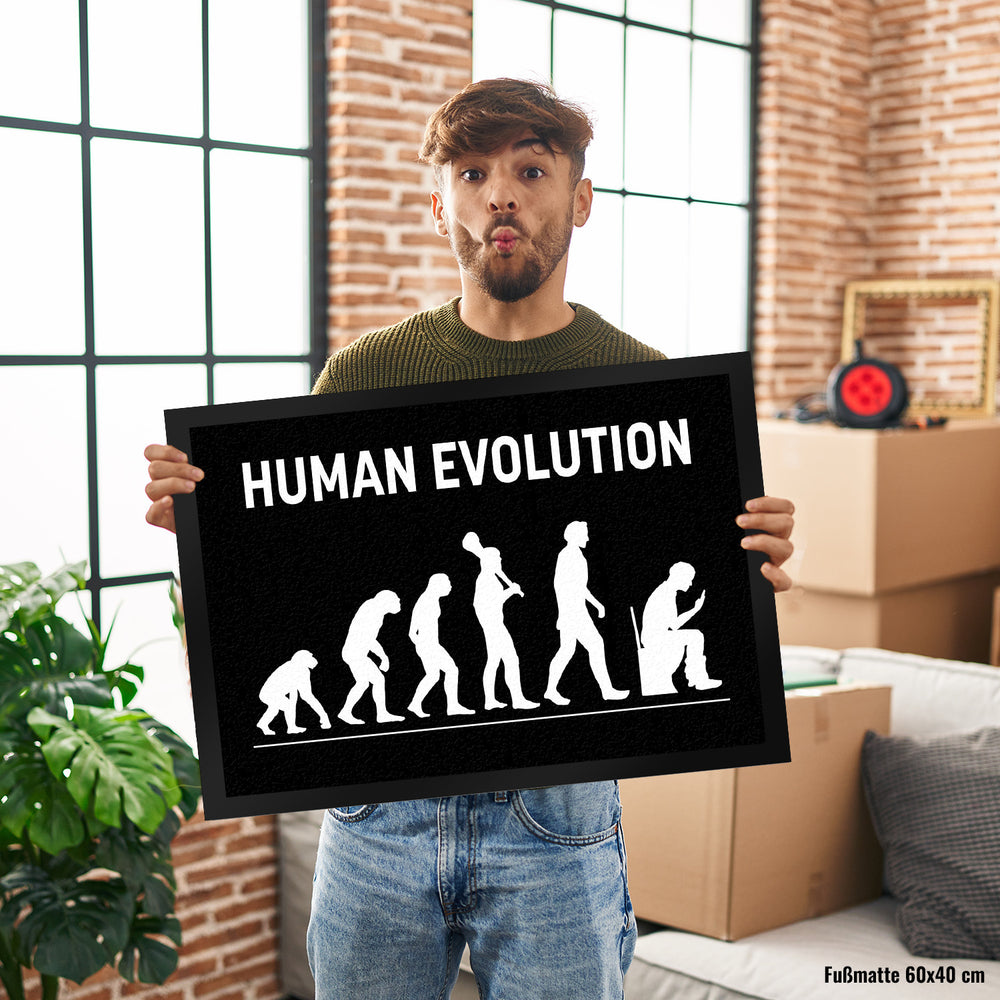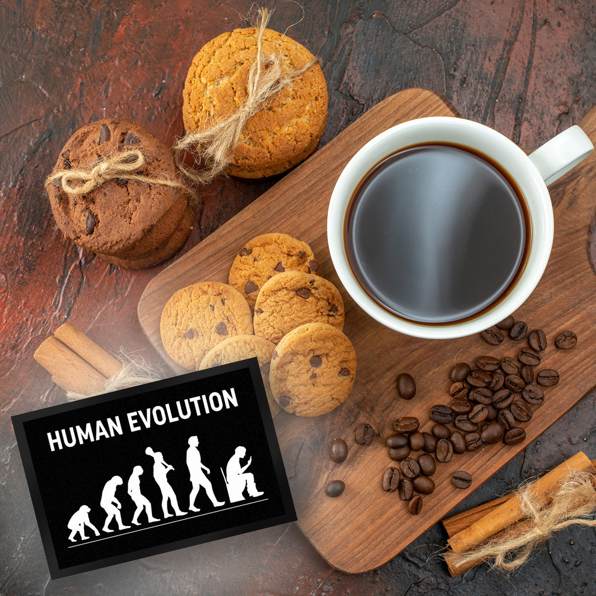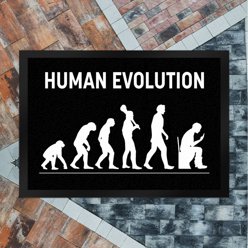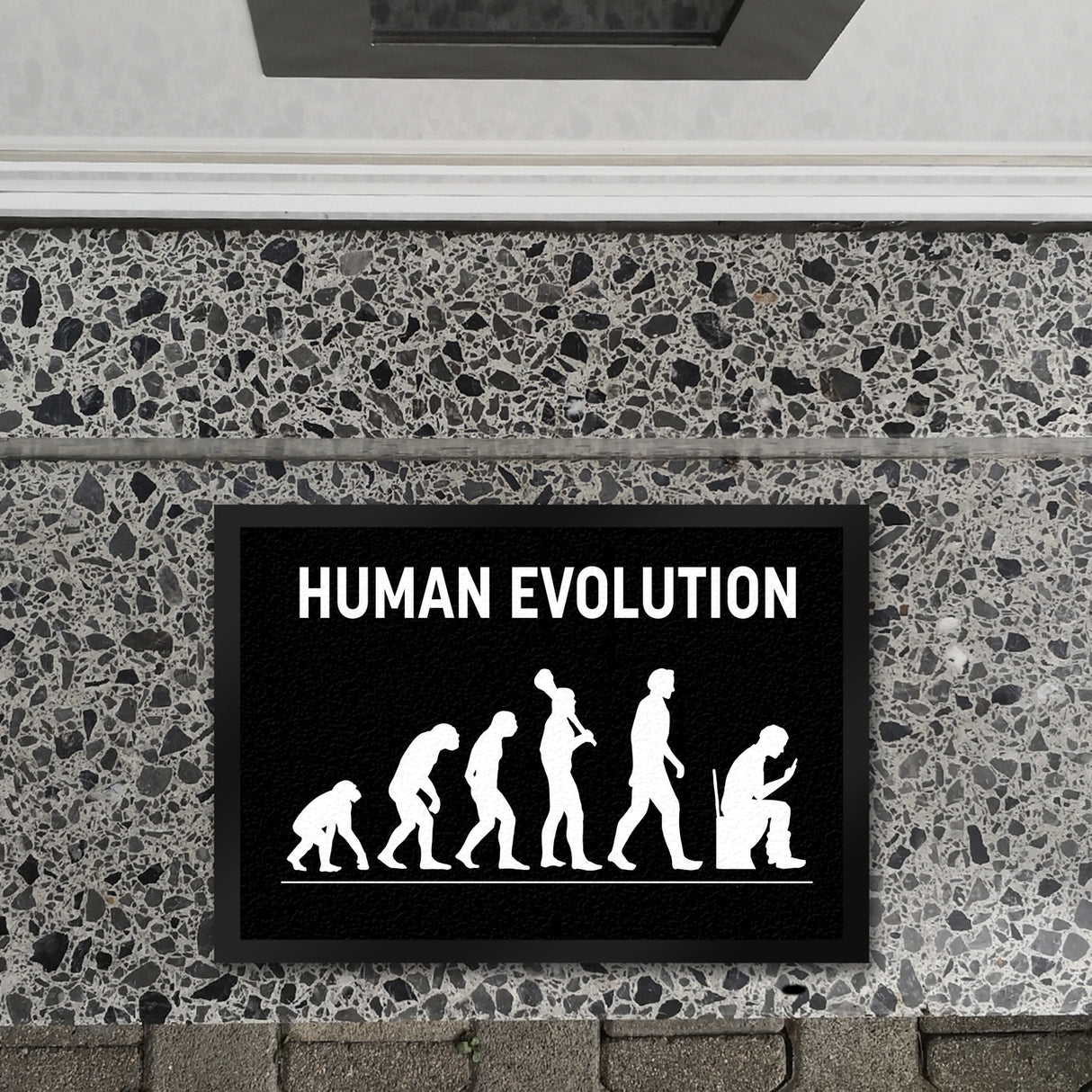 - 1x Human Evolution Fußmatte mit witzigem Motiv in der gewählten Größe