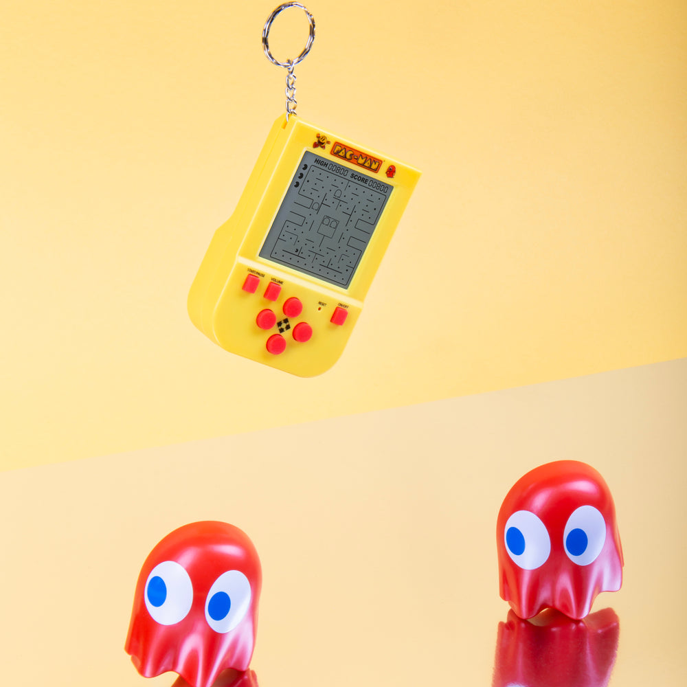 - Mit dem klassischen original Gameplay und Sounds bietet dieser handliche retro arcade Anhänger echtes Pac-Man Feeling. Einfach am Rucksack oder Schlüsselbund befestigen und schon ist das gaming Abenteuer immer dabei. Klein, aber oho!