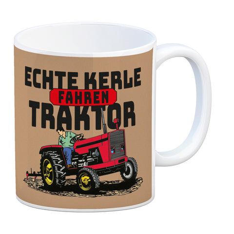 Echte Kerle fahren Traktor Kaffeebecher in braun