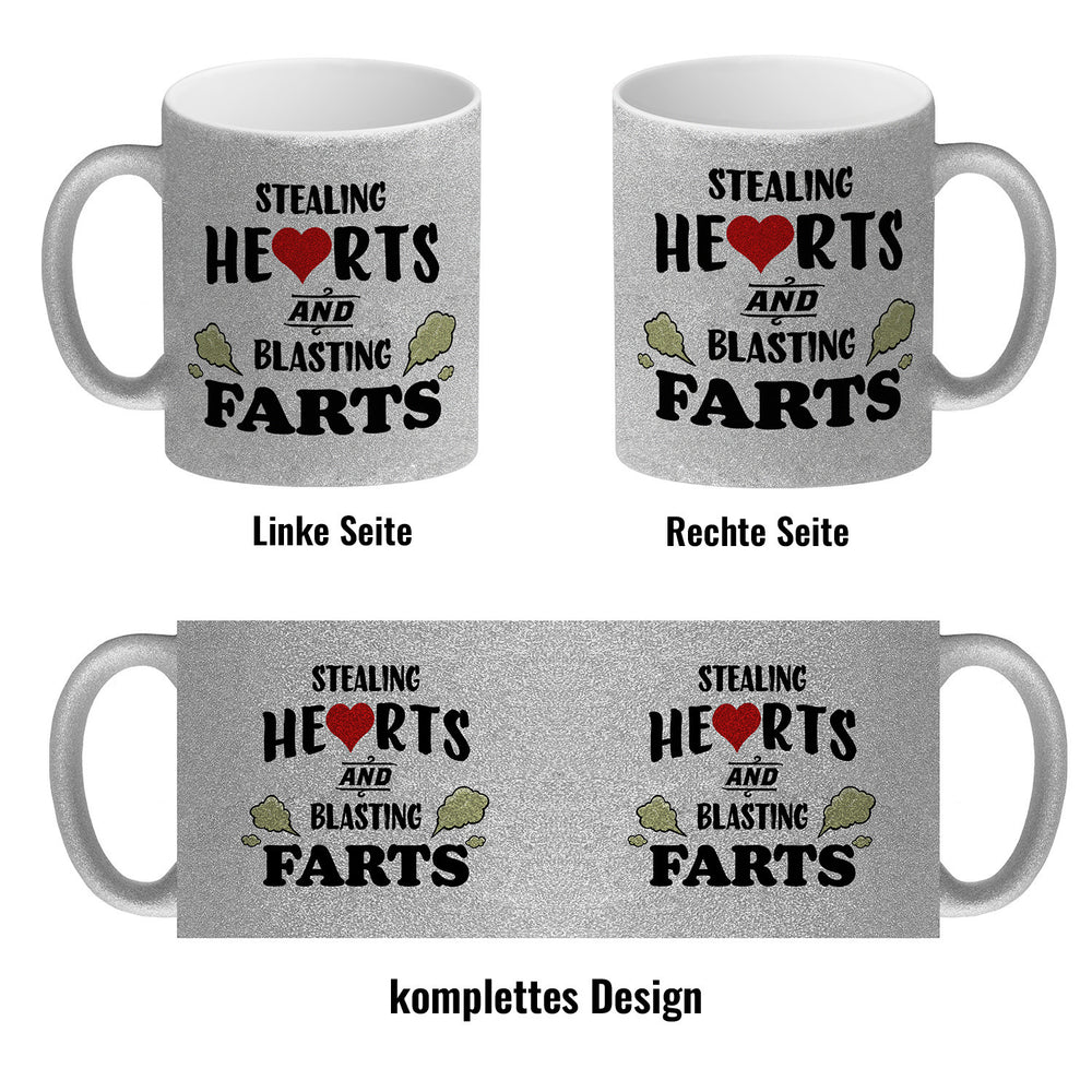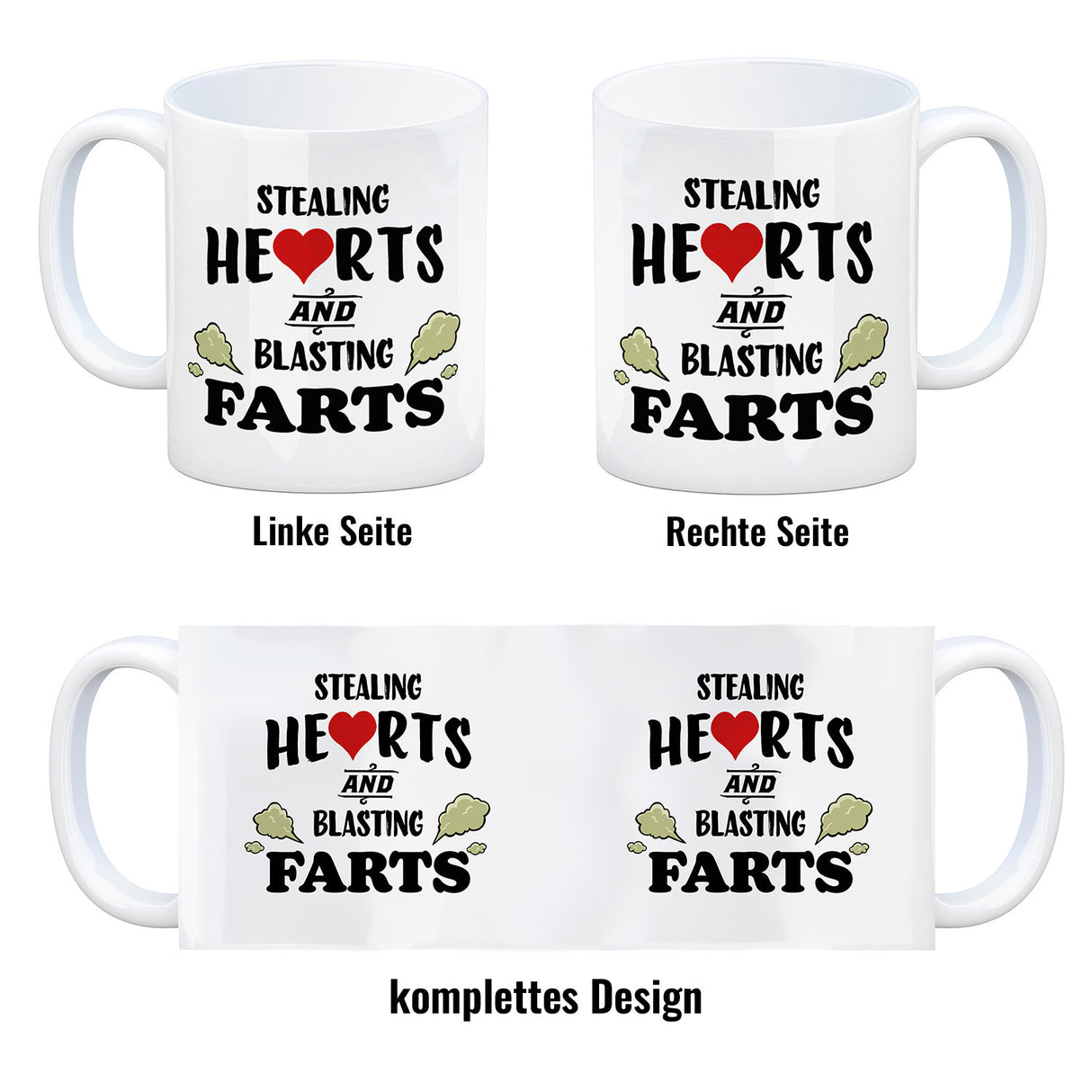 - 1x Stealing hearts and blasting farts Kaffeebecher in der gewählten Ausführung
