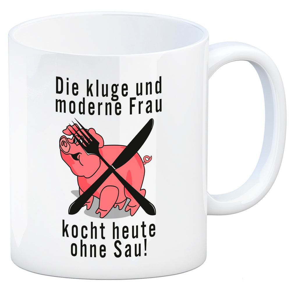 Kaffeebecher zum Thema Fleischesser und Vegetarier mit Schweine Motiv