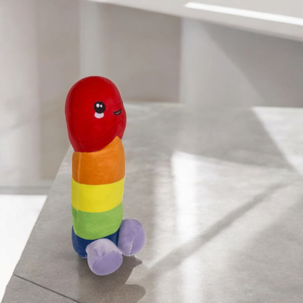 - Das Design ist ein echter Hingucker! Mit seinen leuchtenden Farben - lila, rot, blau, orange, gelb und grün - sprüht unser Stofftier vor Lebensfreude. Der freundliche Gesichtsausdruck auf diesem ca. 29 cm großen, aufrecht stehenden Plüsch-Penis macht ihn zum idealen LGBTQ Merch für dein Zuhause.