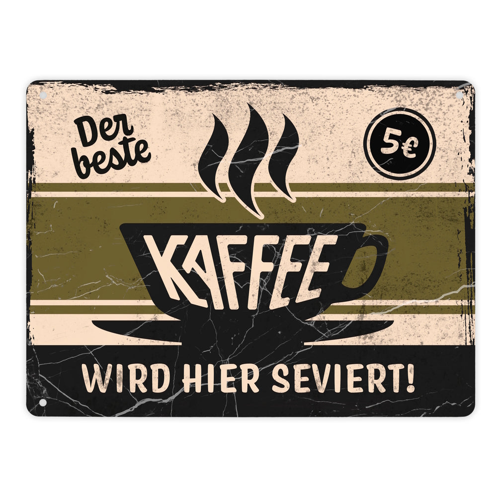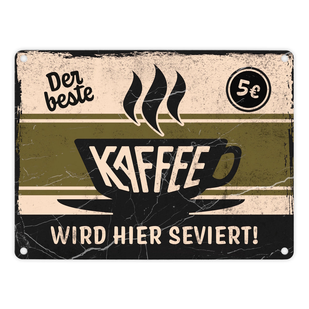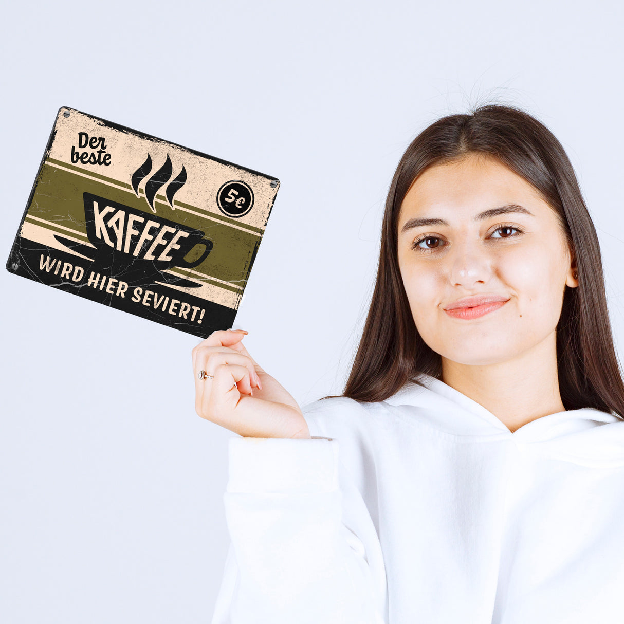 - 1x Metallschild mit Spruch - Der beste Kaffee wird hier serviert in der gewählten Größe