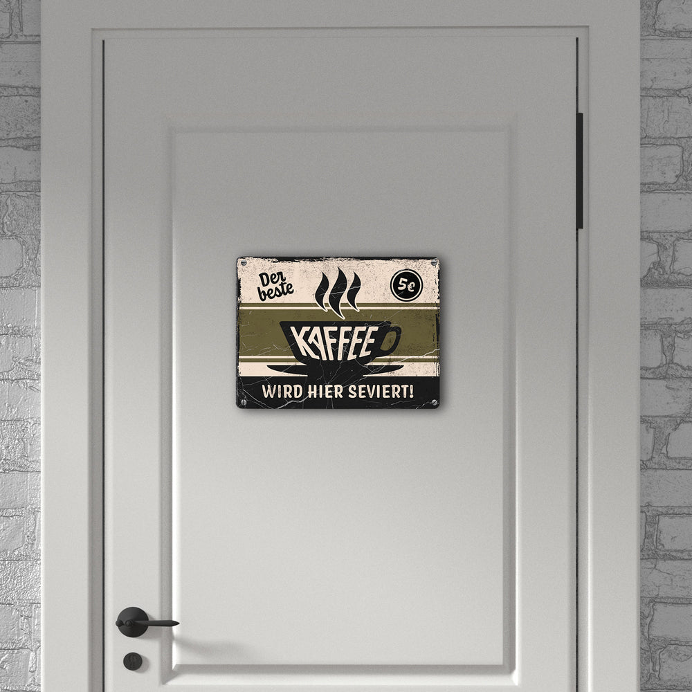 Metallschild mit Spruch - Der beste Kaffee wird hier serviert