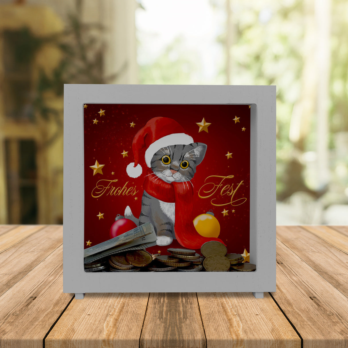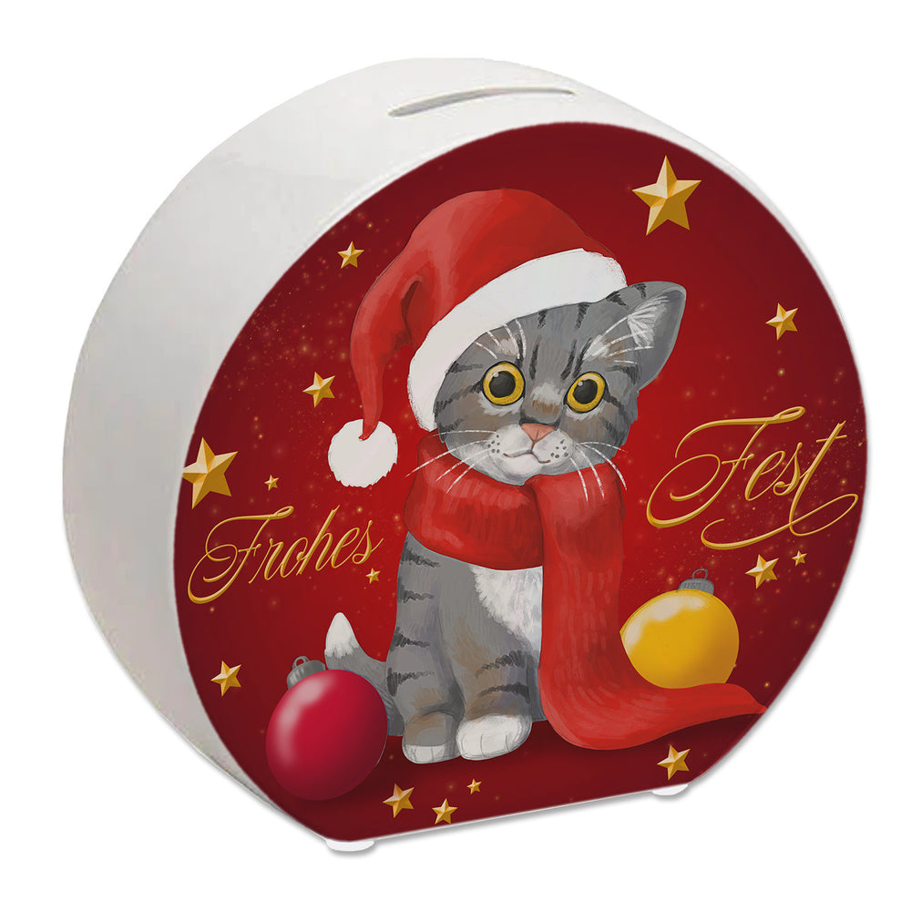 • 1x Frohes Fest Weihnachten Spardose mit Katze in der gewählten Ausführung