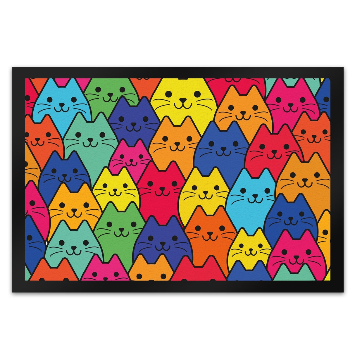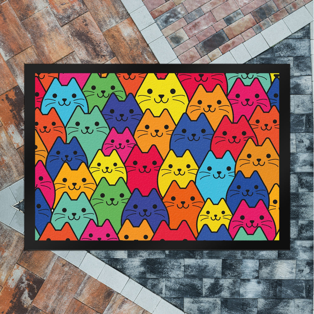 • 1x Fußmatte mit Katzen Motiv - Buntes Wimmelbild mit Comic Kätzchen in der gewählten Größe