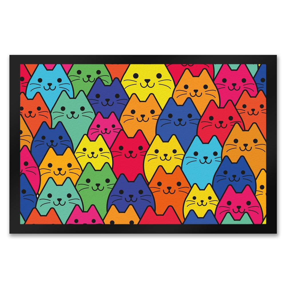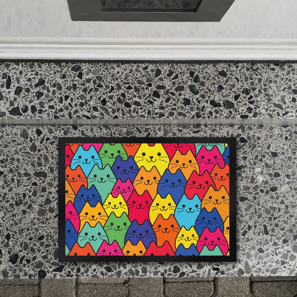 Fußmatte mit Katzen Motiv - Buntes Wimmelbild mit Comic Kätzchen