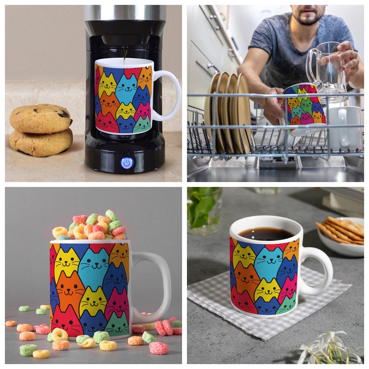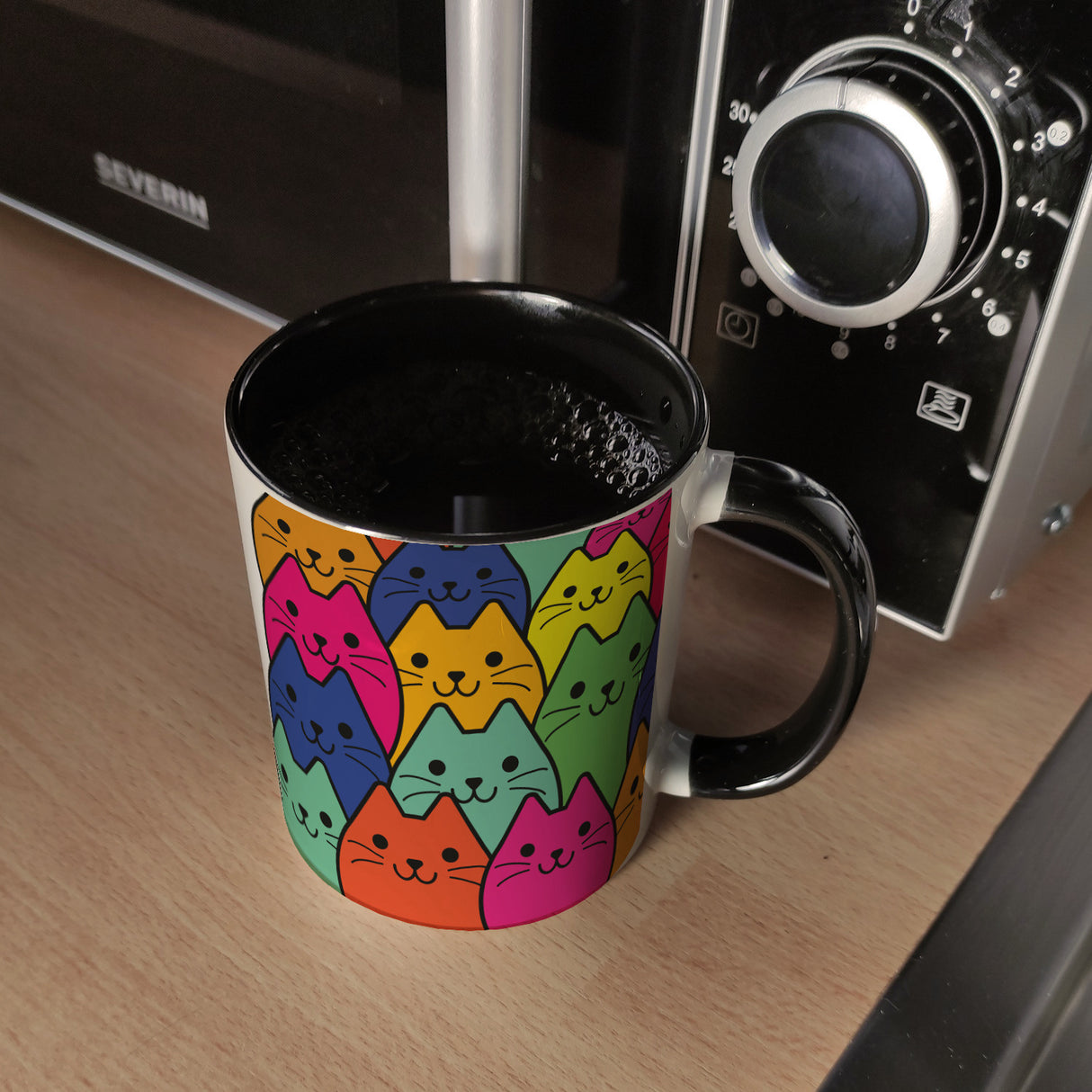 - Ein bunter Kaffeebecher für alle verrückten Katzenbesitzer! Mit diesem farbenfrohen Becher trinkst du deinen Kaffee nicht nur stilvoll, sondern wirst auch zum Blickfang des Büros.