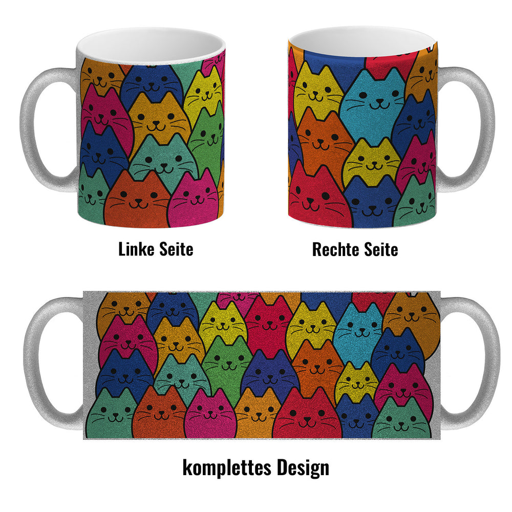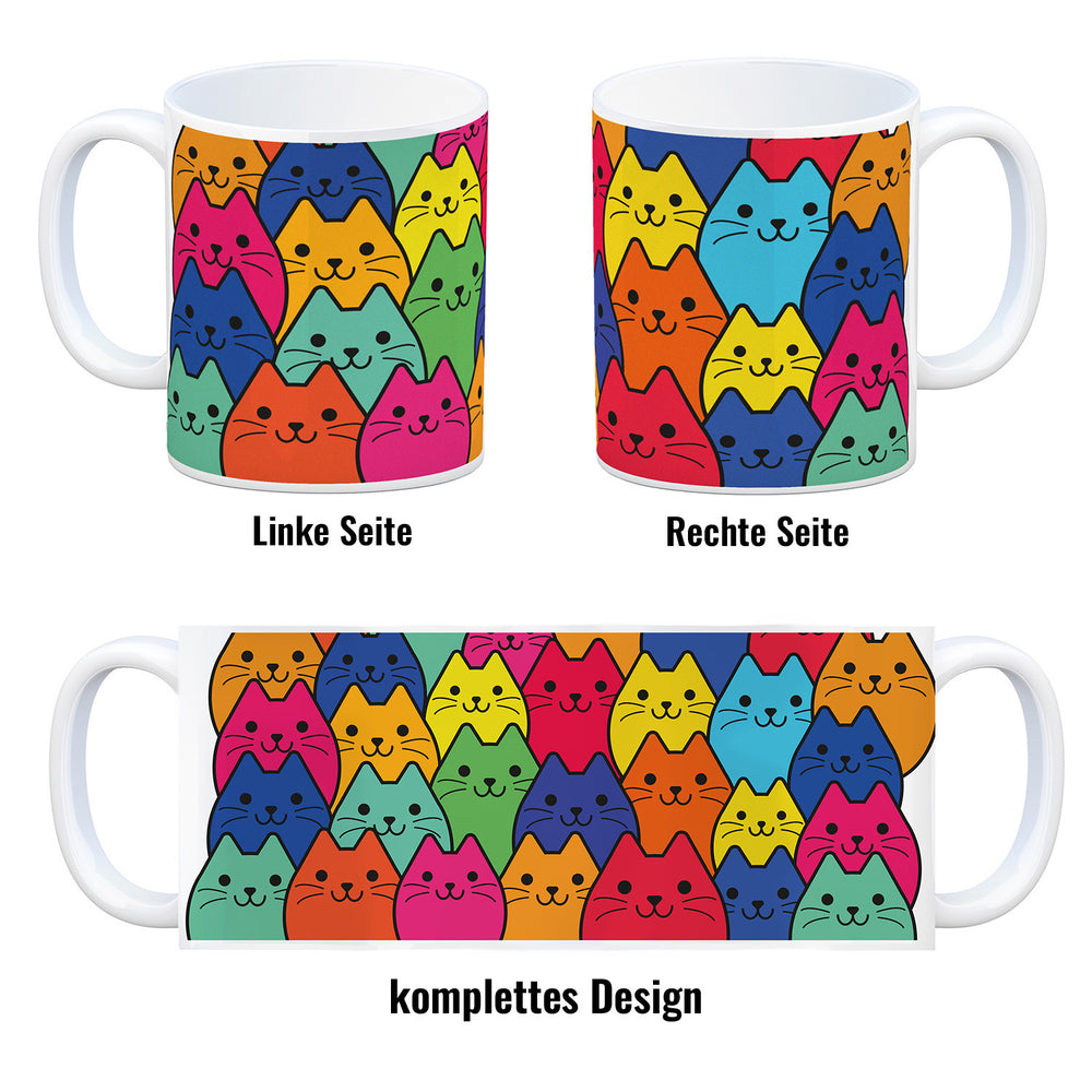 - 1x Kaffeebecher mit Katzen Motiv - Buntes Wimmelbild mit Comic Kätzchen in der gewählten Ausführung