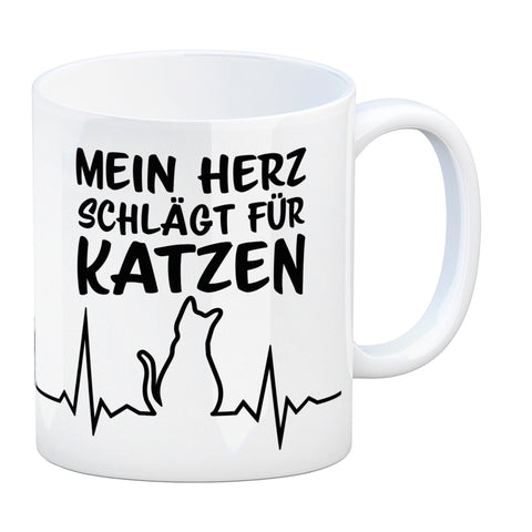 Mein Herz schlägt für Katzen Kaffeebecher mit süßem EKG Motiv