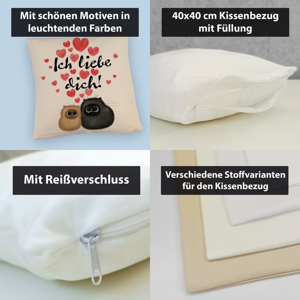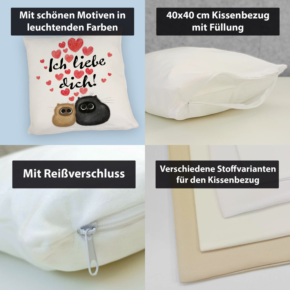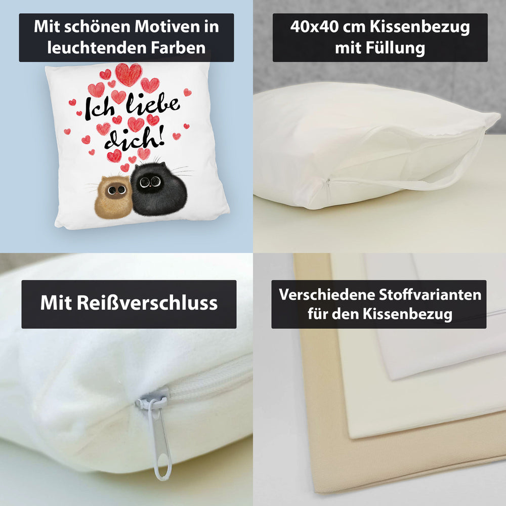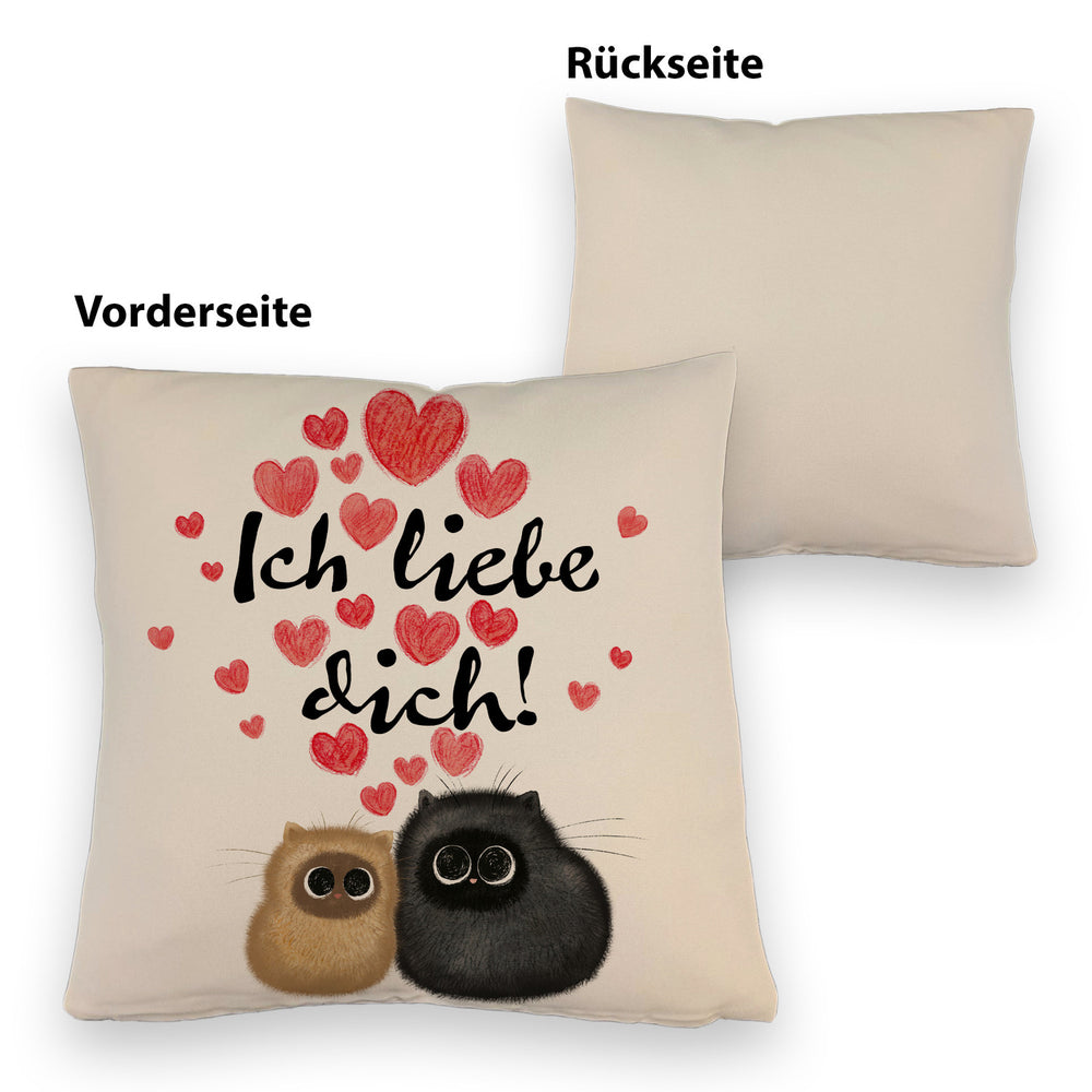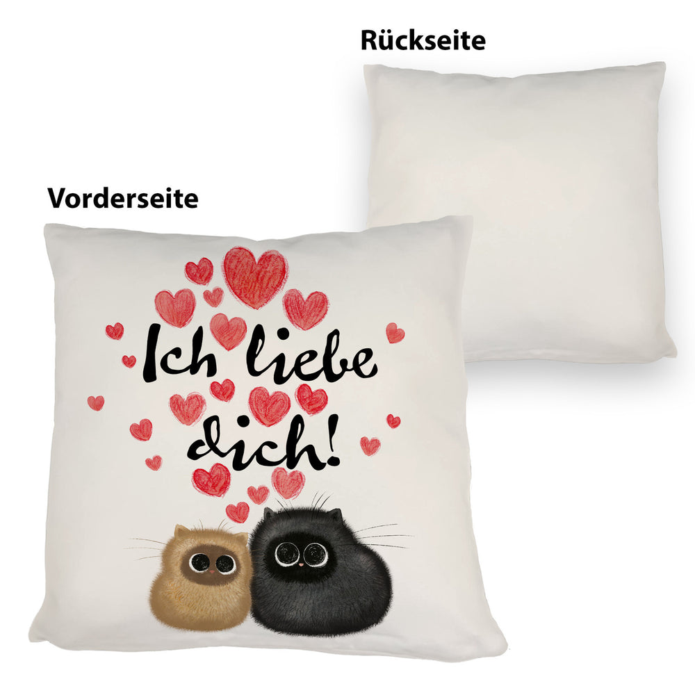 Knuffige Katzen Kissen mit Spruch Ich liebe dich