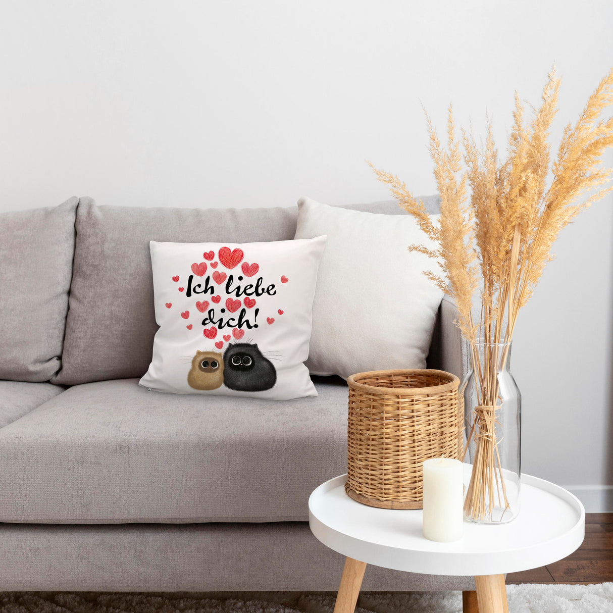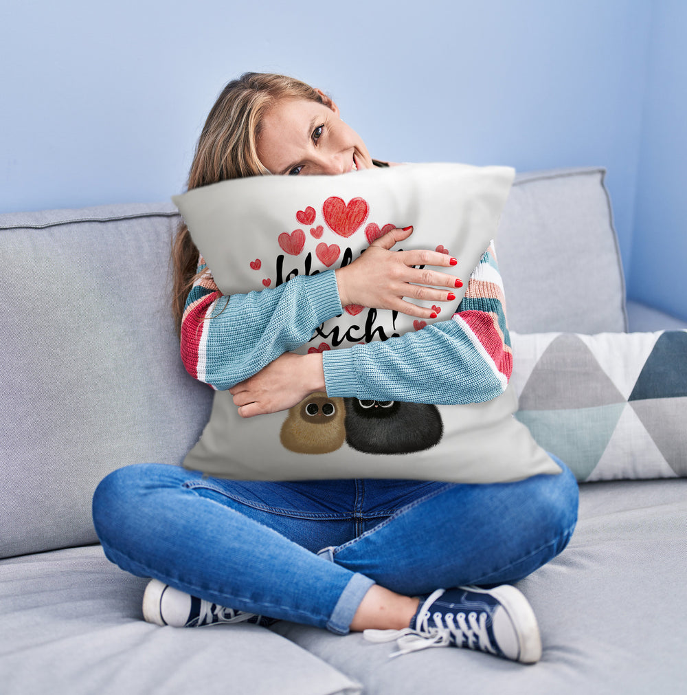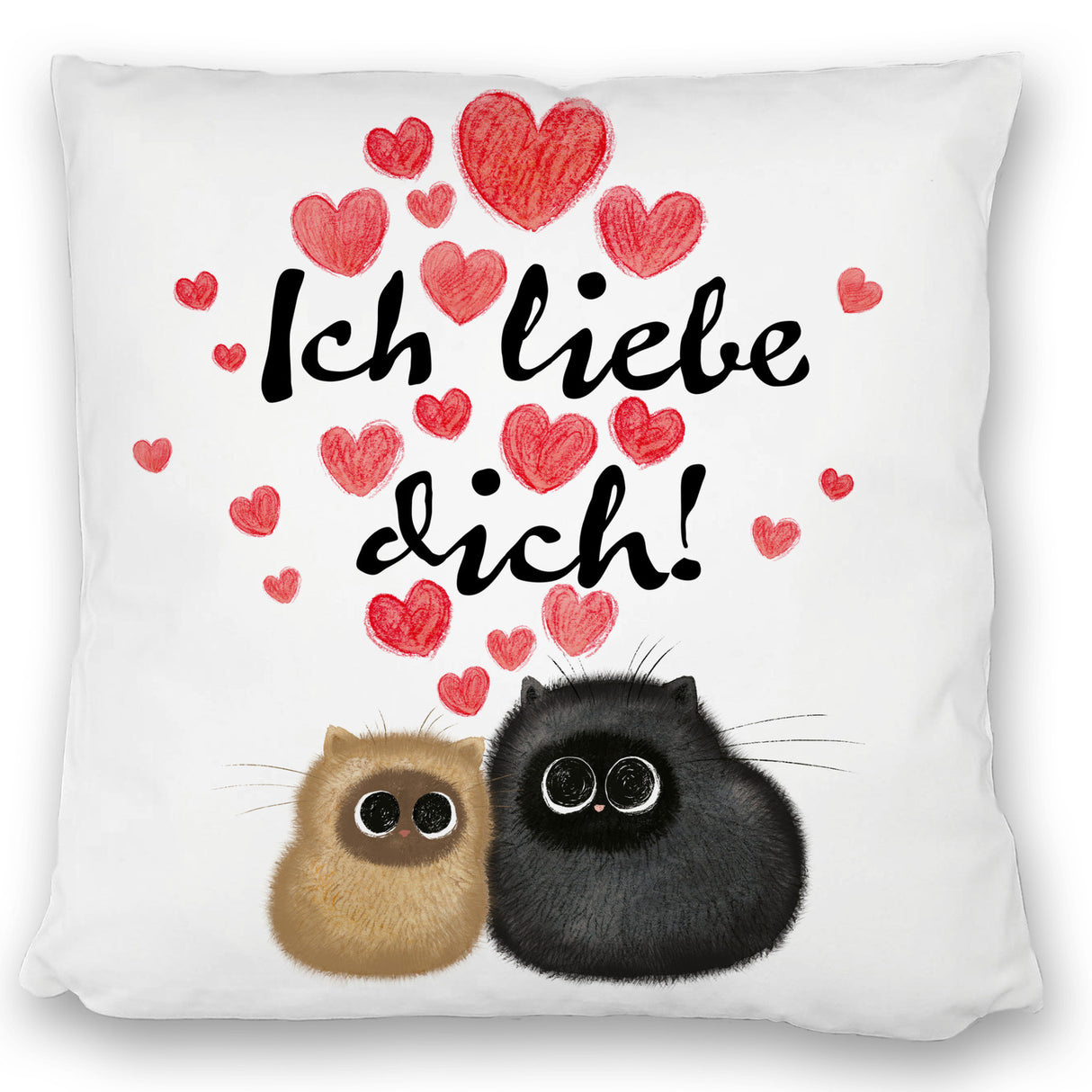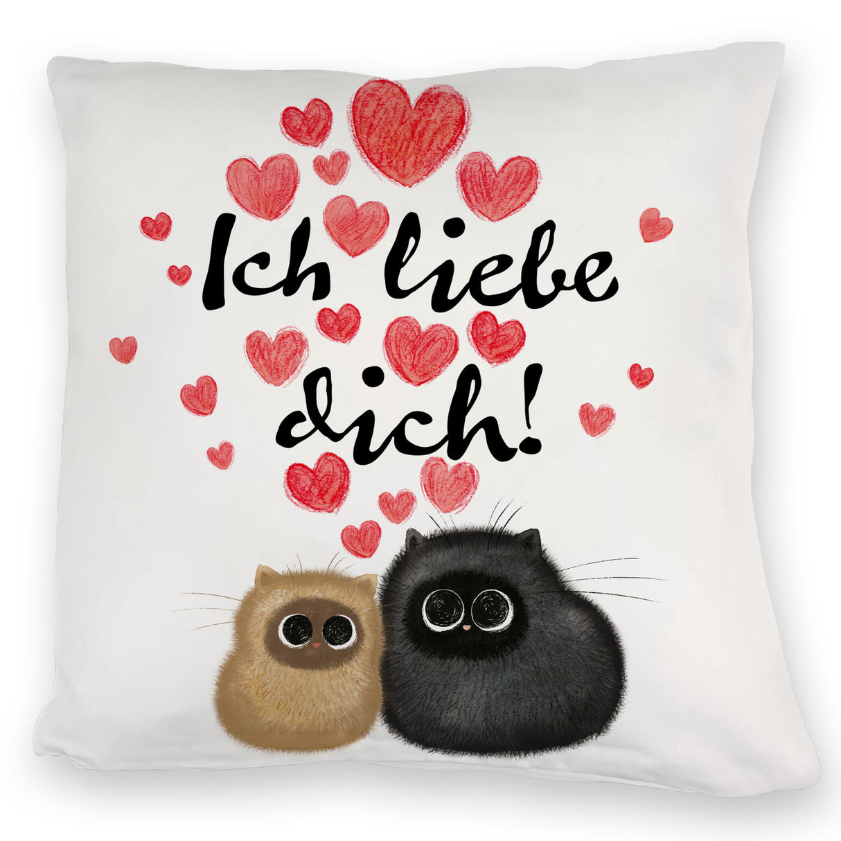 Knuffige Katzen Kissen mit Spruch Ich liebe dich