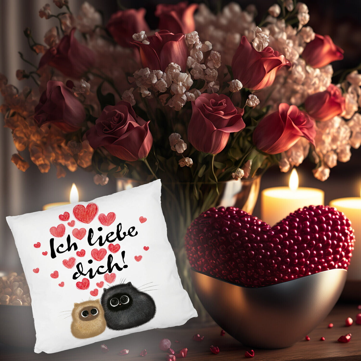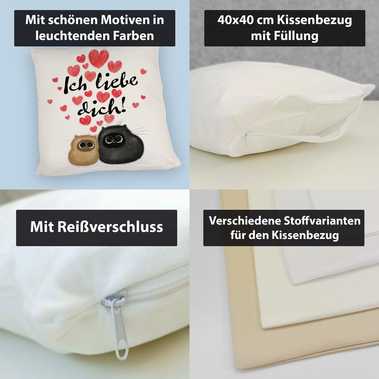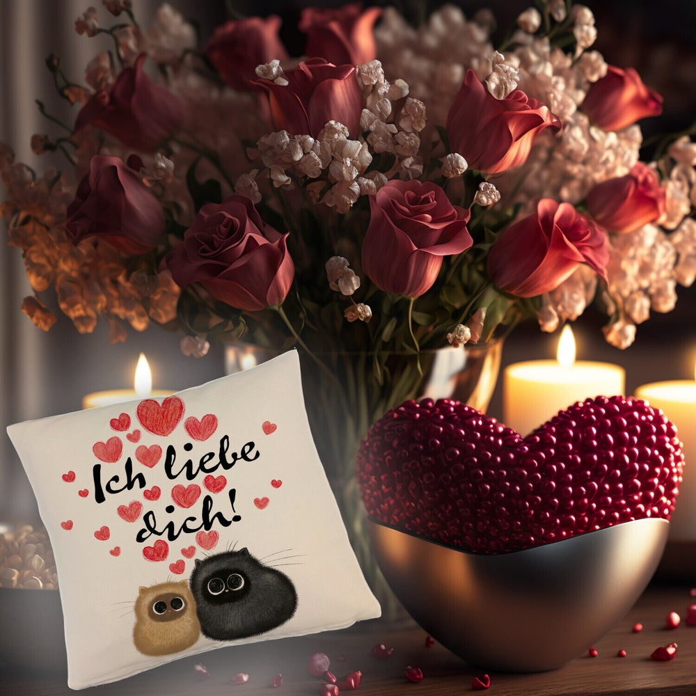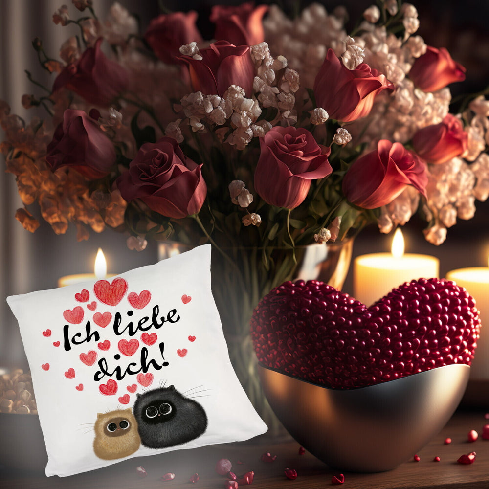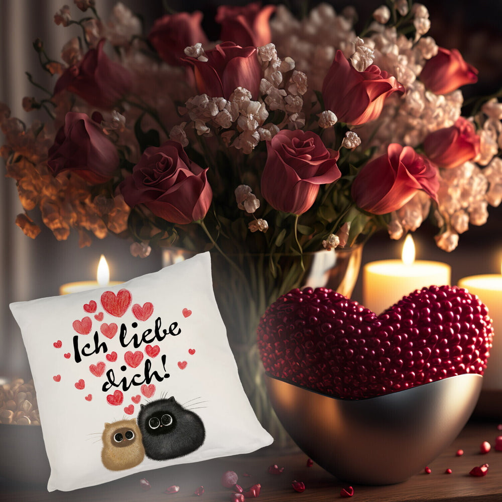 • 1x Knuffige Katzen Kissen mit Spruch Ich liebe dich in der gewählten Ausführung