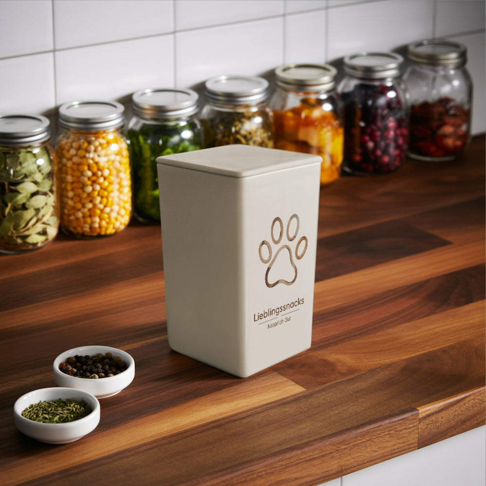 - Lieferumfang: 1x Lieblingssnacks natürlich gut - Pfotenabdruck Dose 900ml für Haustiere