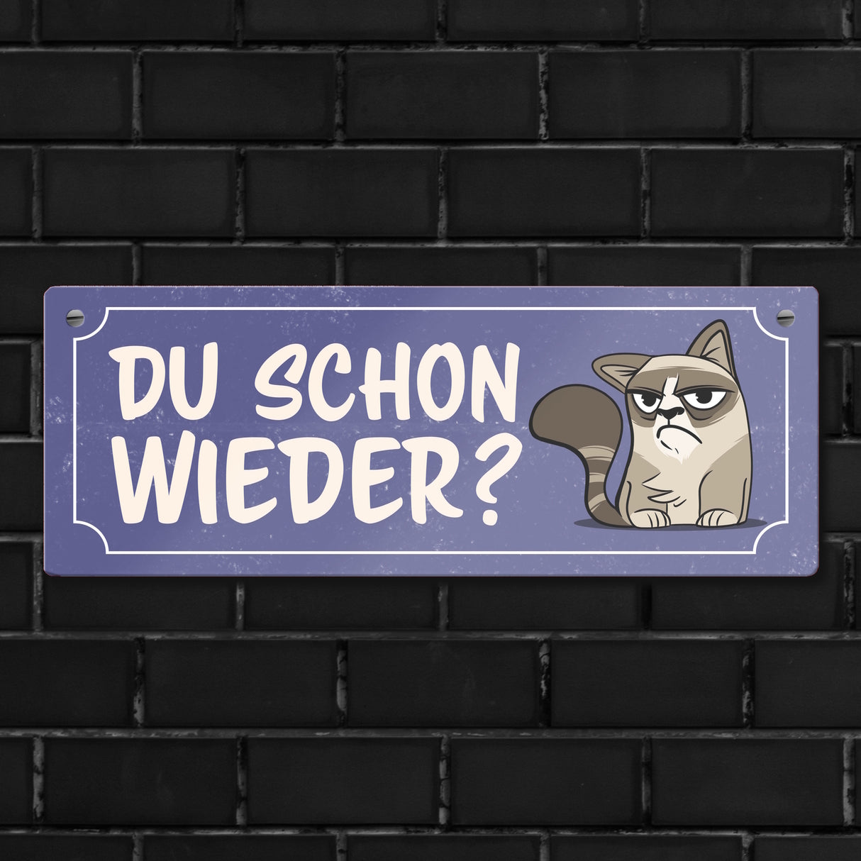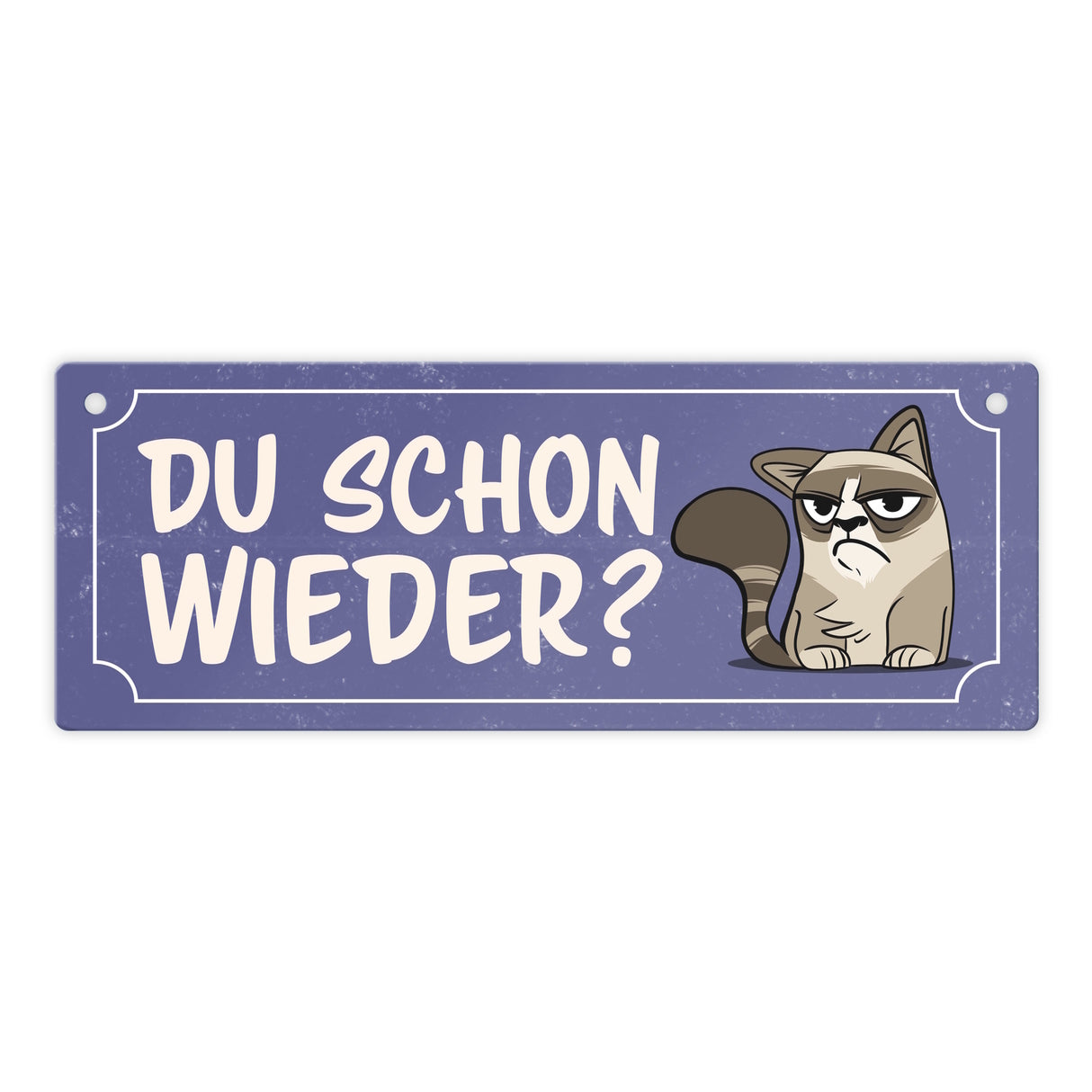 Metallschild mit Spruch und genervter Comic Katze - Du schon wieder? - 7,5x20 cm ist auf Lager und wird versandt, sobald es wieder verfügbar ist