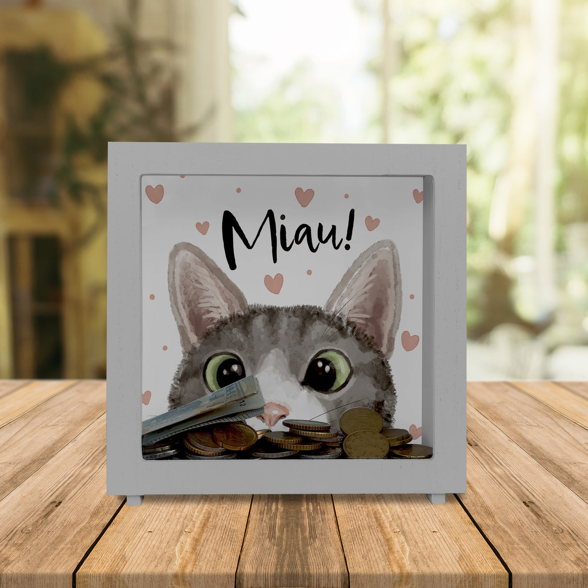 - 1x Miau Katze Spardose in der gewählten Ausführung
