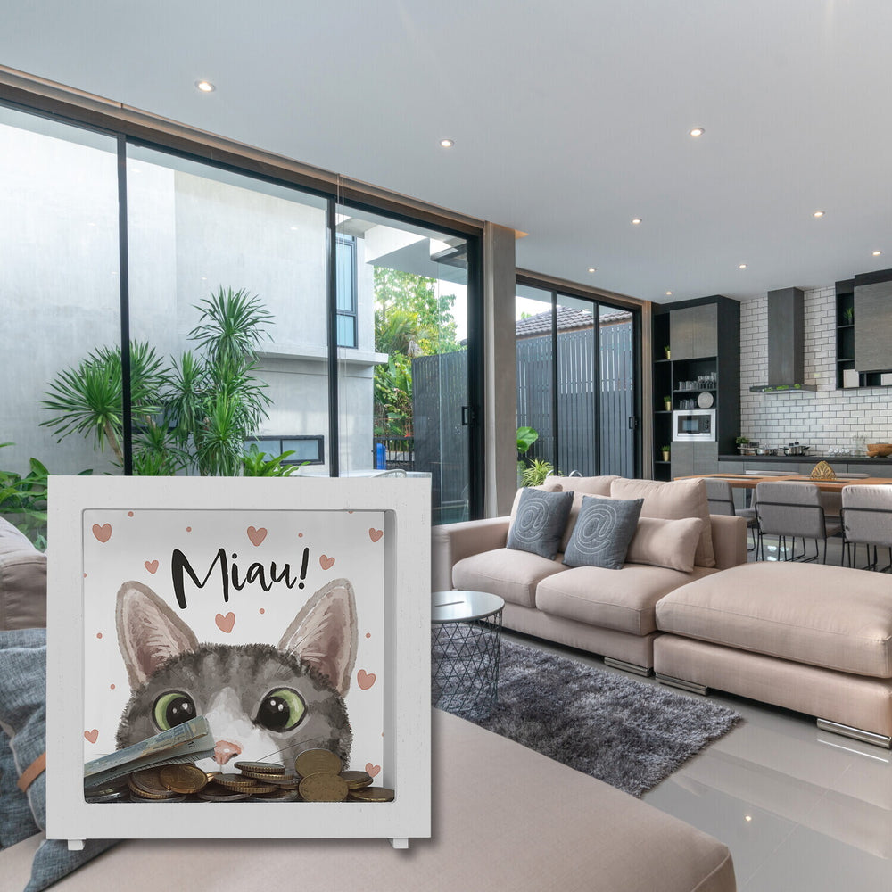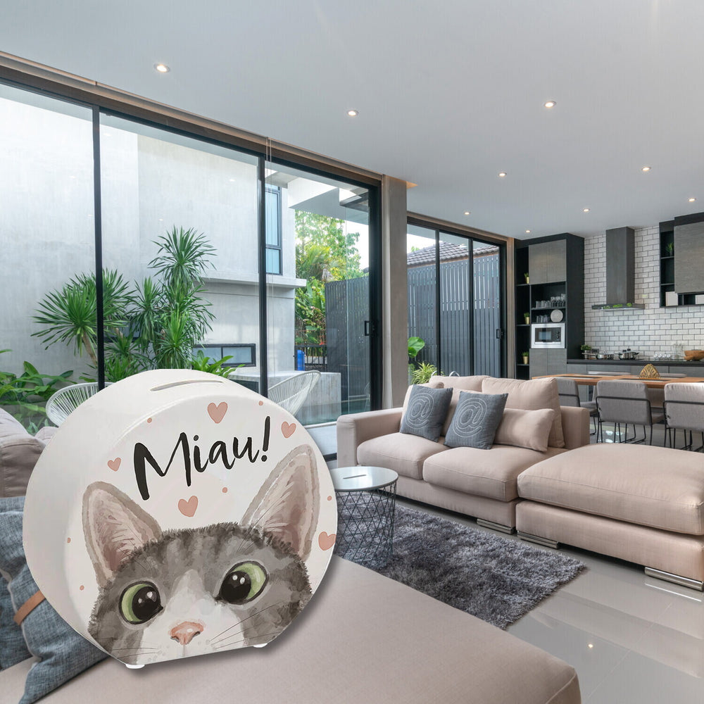 - Die Spardose ist ein wahrer Hingucker mit ihrem niedlichen Katzenmotiv. Die neugierige Katze mit funkelnden Kulleraugen und Herzen im Hintergrund sorgt für ein herzerwärmendes Design. Wer könnte da widerstehen, seine Münzen hineinzuwerfen? Eine Spardose ist ein Muss für jeden, der seine Ersparnisse sicher und stilvoll aufbewahren möchte.